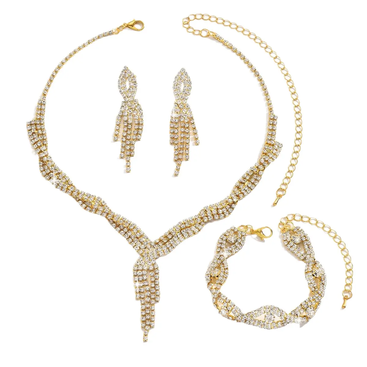Unice Gold Bride Necklace Earrings Set Bridal Wedding Jewelry Sets Rhinestone Prom Costume Choker Necklaces for Women