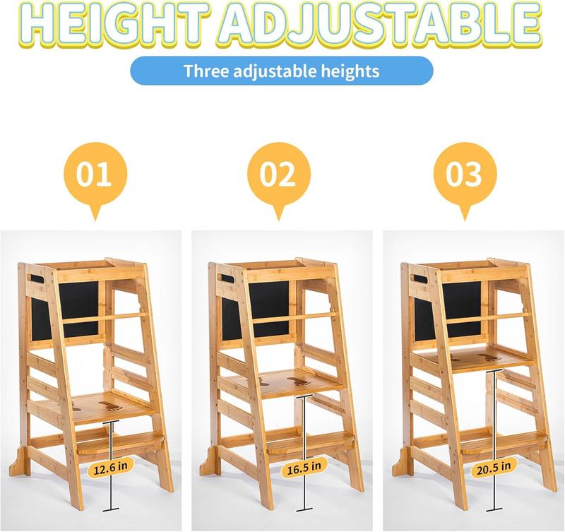 ·Perfect for Toddler Growth: This adjustable height kids kitchen step stool is designed for toddler's growth and independence. It serves as a toddler learning tower and helper stool for both the bathroom and kitchen counter. 🏠
