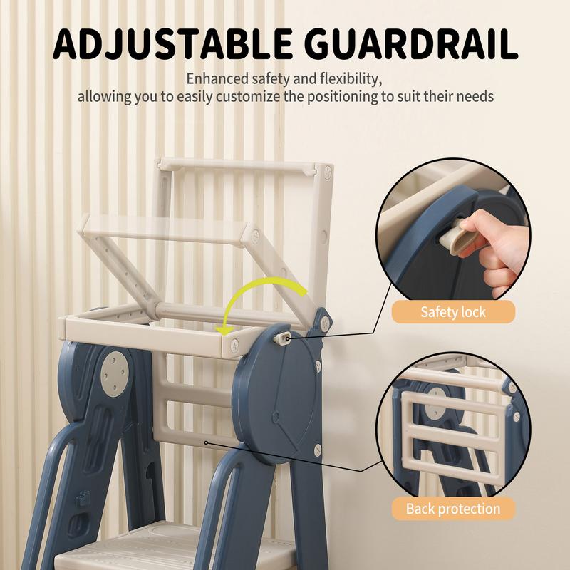 This toddler step stool includes an adjustable guardrail, ensuring safety during use. The guardrail can be customized to fit various heights, making it suitable for growing toddlers. The design promotes a secure environment for children to explore and learn, enhancing their motor skills and confidence.