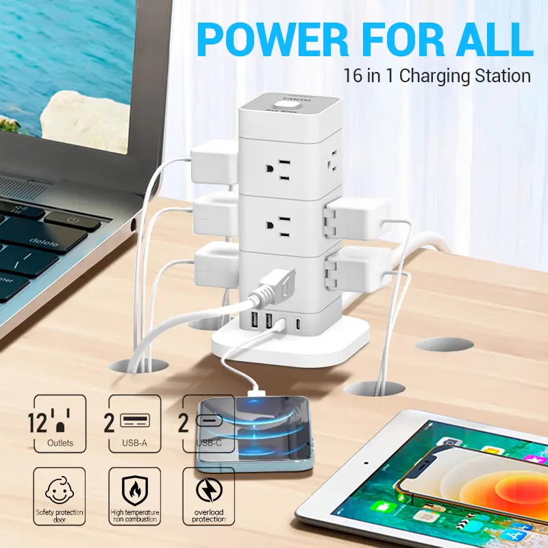 The UNICOO Tower Power Strip with Surge Protector is the perfect blend of convenience and power, making it an essential addition to any home or workspace.