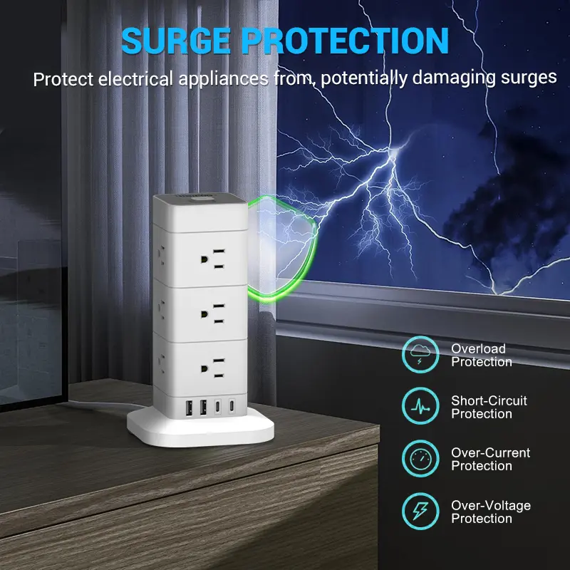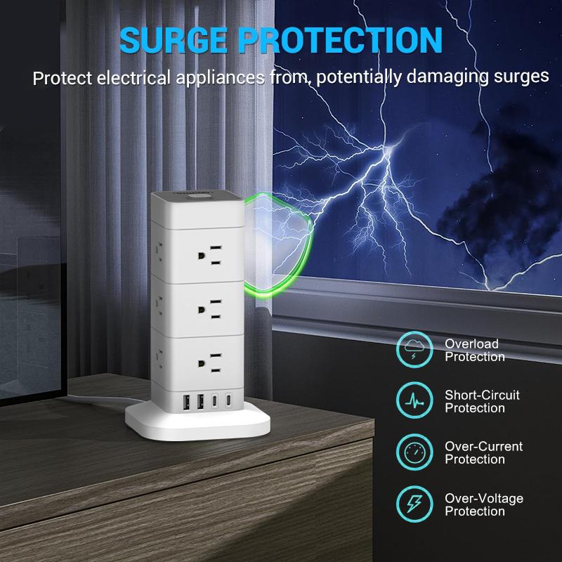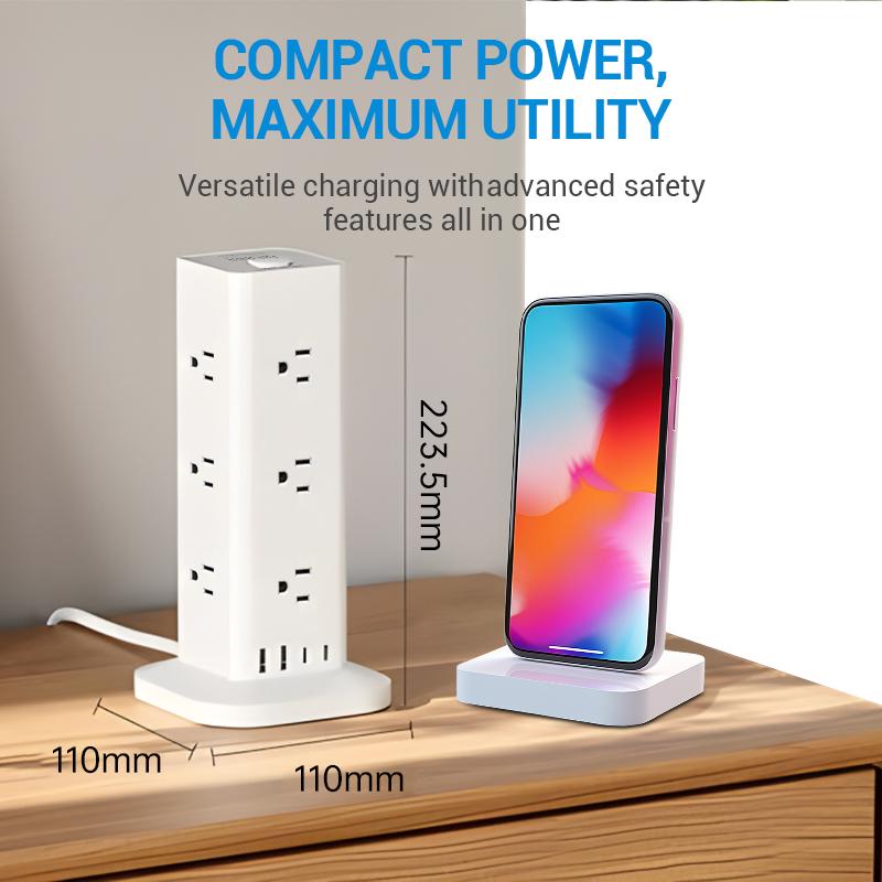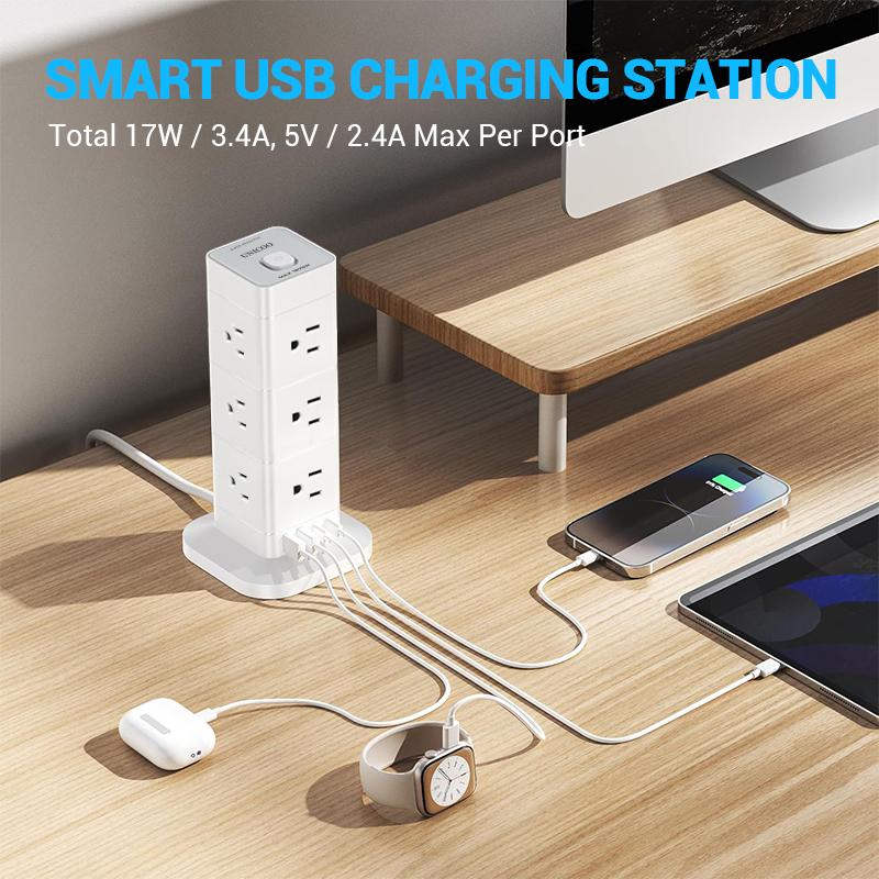 ·Organized Charging Station: This power tower charging station makes it easy to keep your devices powered and your space neat. With its multiple outlets and USB ports, it serves as an all-in-one plug tower with USB ports surge protector that eliminates the need for multiple chargers and adapters.