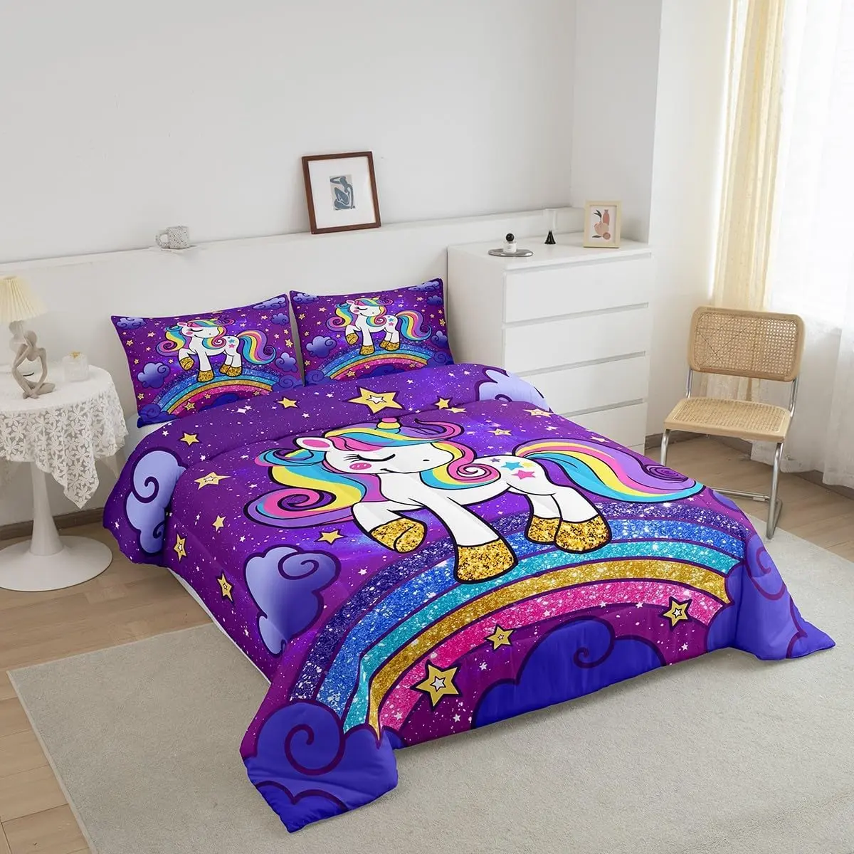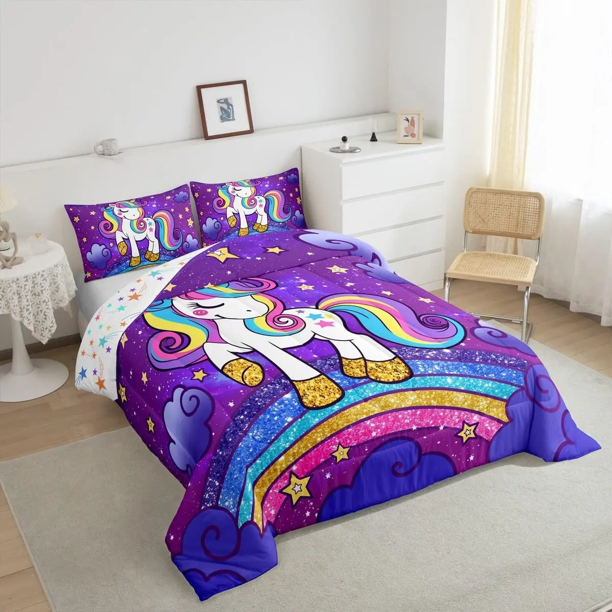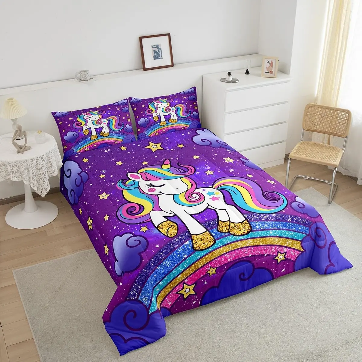 5. Unicorn Bedding Set,Cute Unicorn Comforter Set,Ultra Soft Comforter,Unicorn Duvet Set,Room Decor Cute Animal Decor Quilt Set