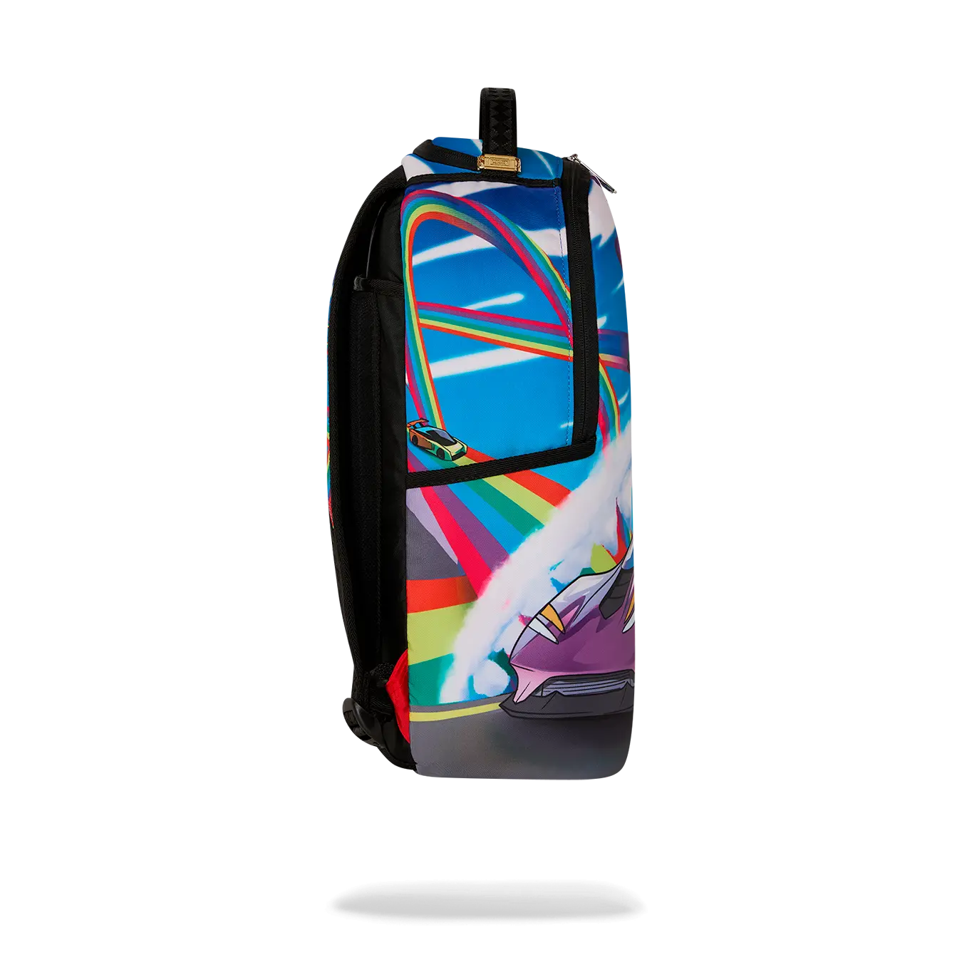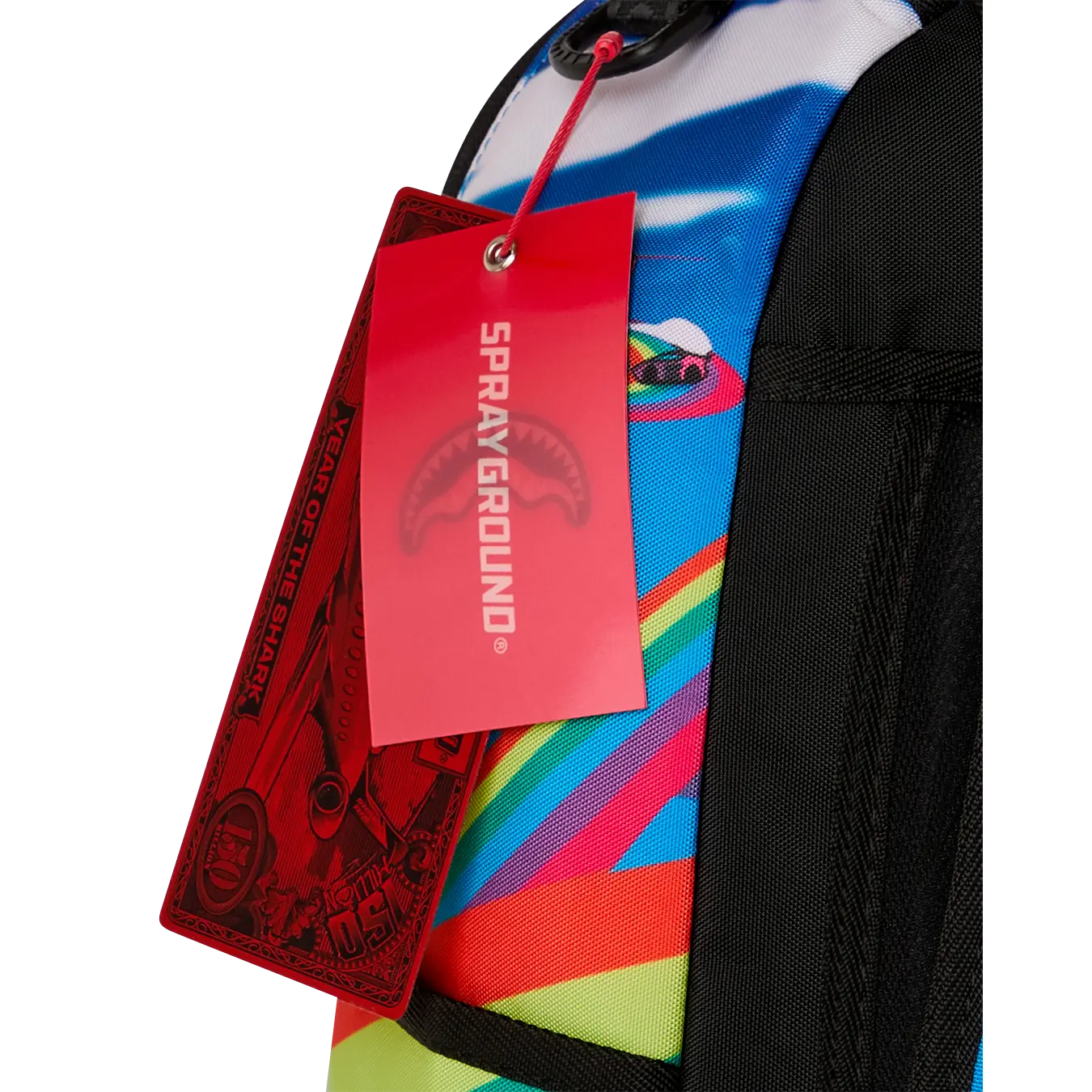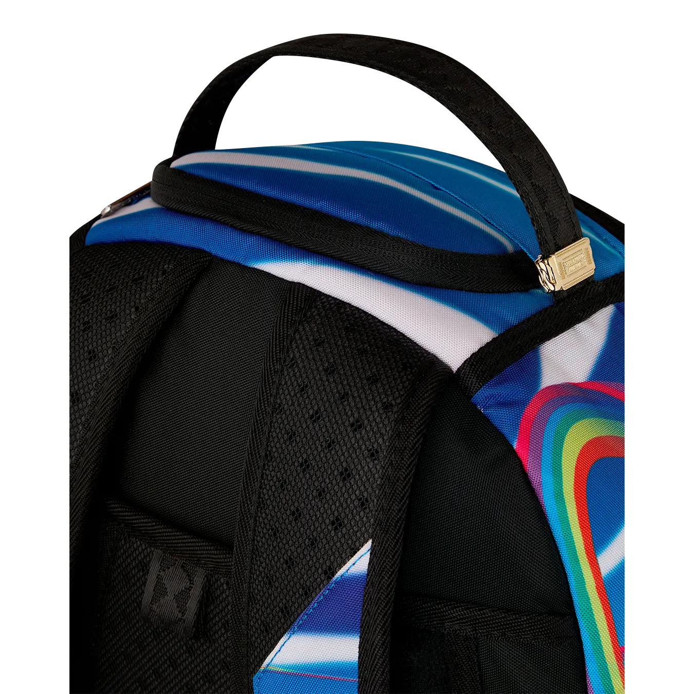 Dimensions: 18" x 6" x 11.5" • Front zipper pocket • Side pockets • Zippered Stash pocket • Separate velour sunglass compartment • Ergonomic mesh back padding • Adjustable Straps for custom sizing • Gold zippers with metal hardware • Metal "Sprayground Authentic" badge • Slide through back sleeve connects to carry-on luggage to free your hands