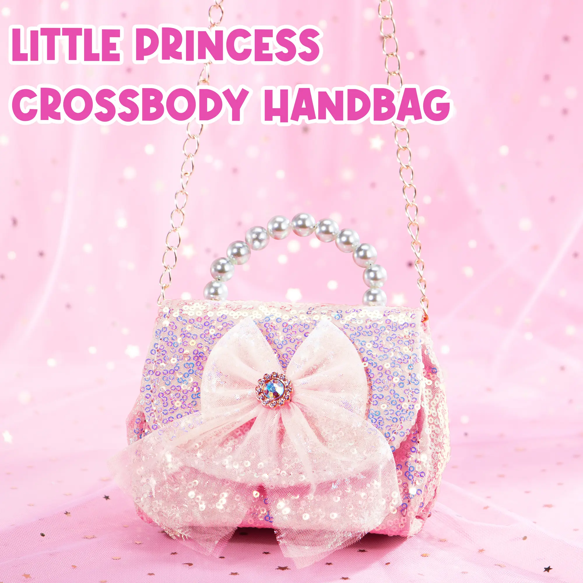 Adorned with sparkly sequins, a bow tie, and a pearl handle, this crossbody purse adds a striking touch to any outfit. Perfect as an accessory for themed parties or festive occasions like birthdays, Christmas, Halloween, or Easter!