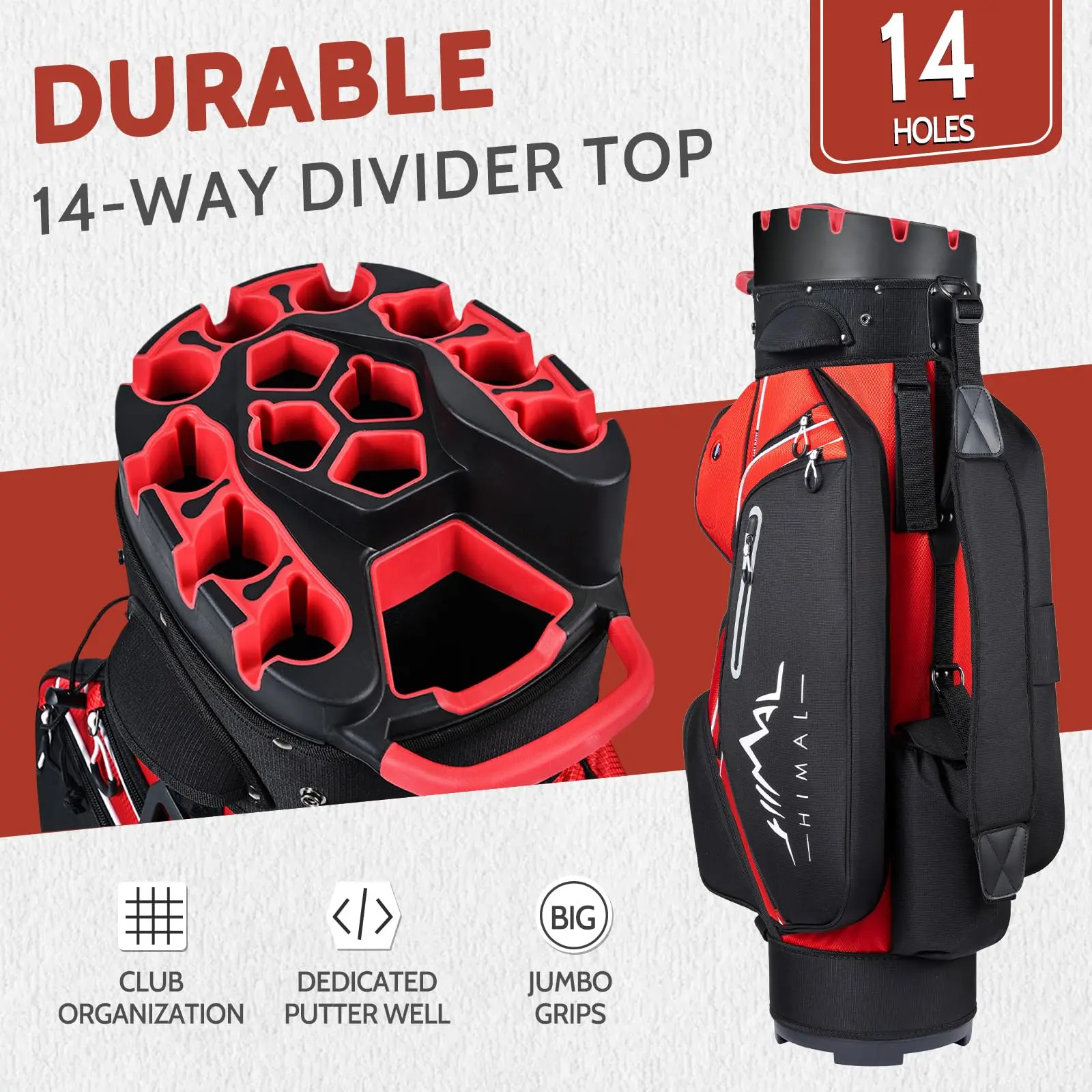 【Quiet Golf Club Design】: This golf cart bag features a silent locking mechanism that securely holds your clubs in place. Its innovative design prevents clubs from rattling and clattering, so you can focus on your swing while and game. By minimizing contact and wear, it also protects your clubheads and extends their lifespan