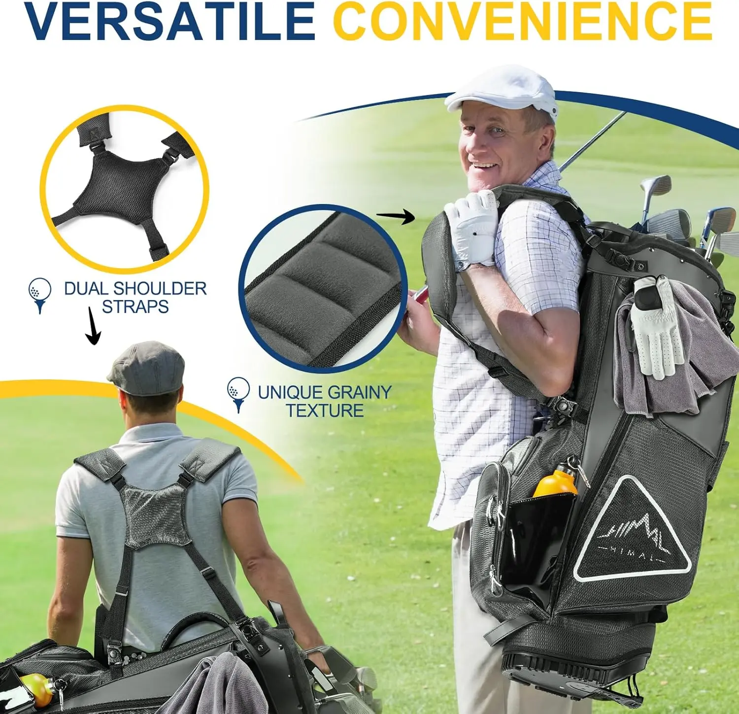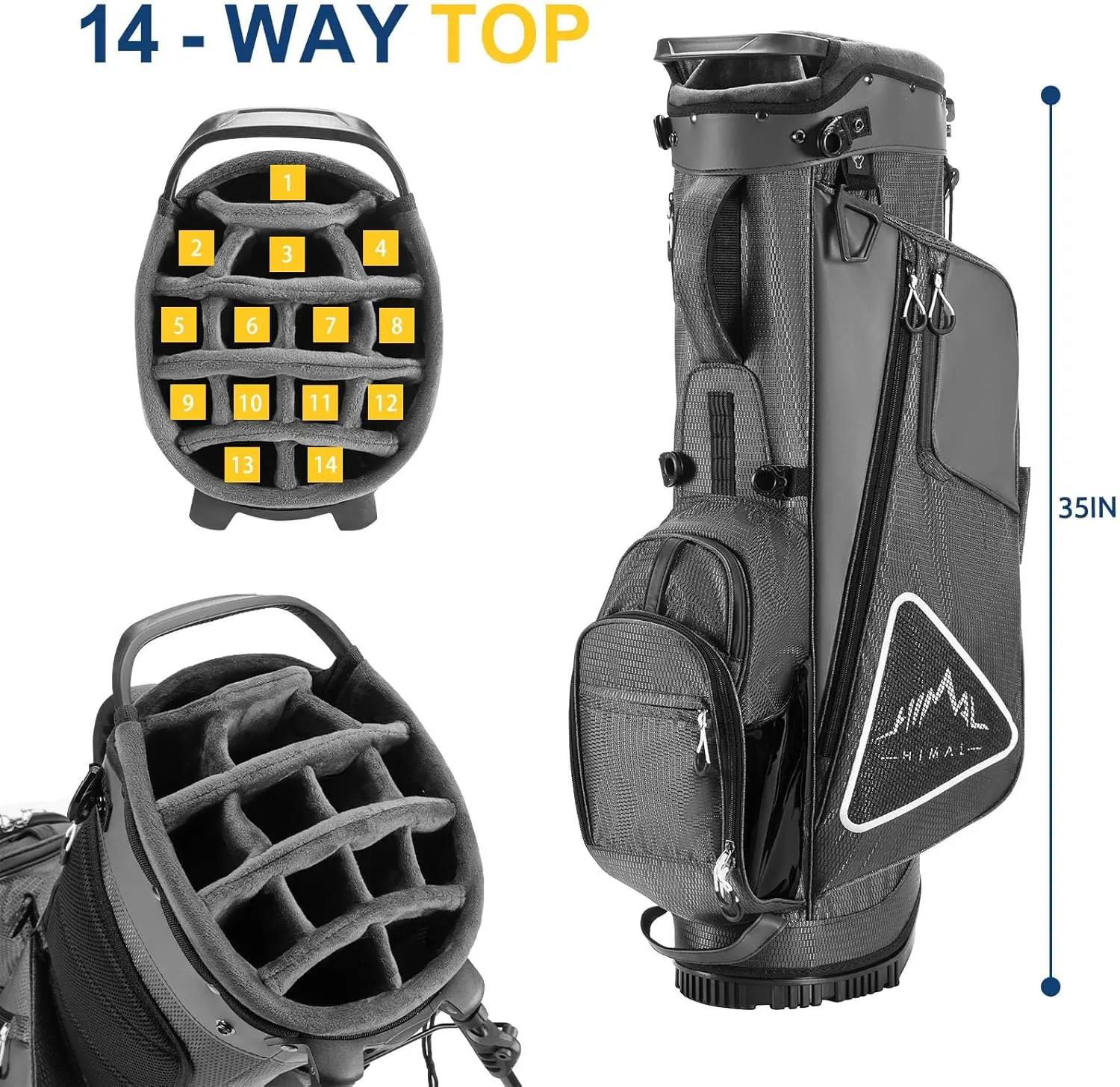 UNIHIMAL 14-Way Golf Stand Bag, Full Length Premium PU Leather Golf Bag with Plush Top, Magnetic Pocket, Dual Strap and Rain Cover for Men