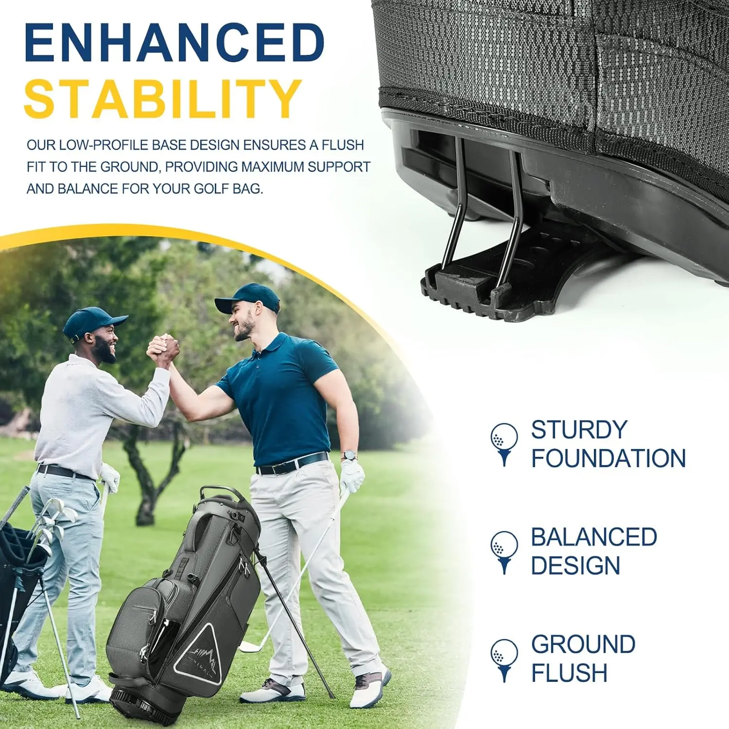 【STABLE STAND BAG】Easily release the stand legs and the stable base protects your clubs by standing firmly on ground. Features a convenient grab-and-go speed handle and retractable legs that automatically fold in when picking up the bag