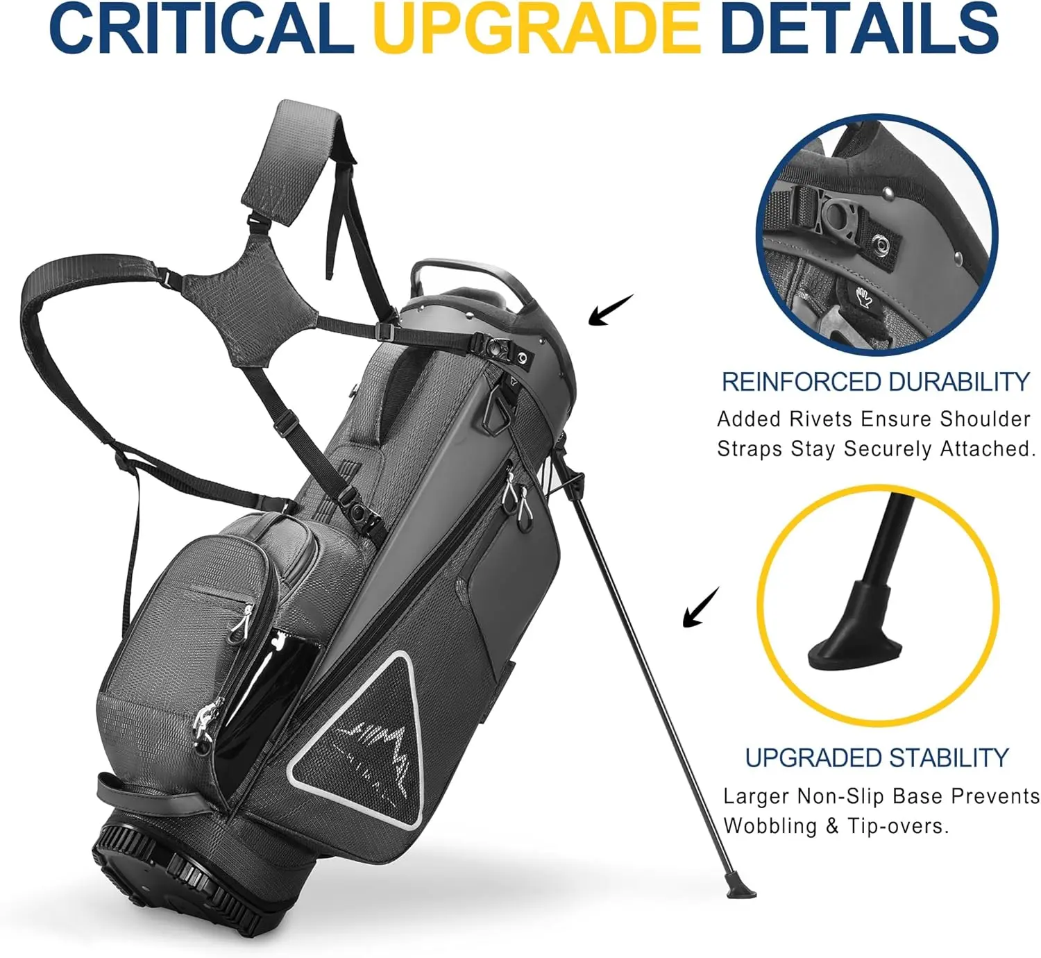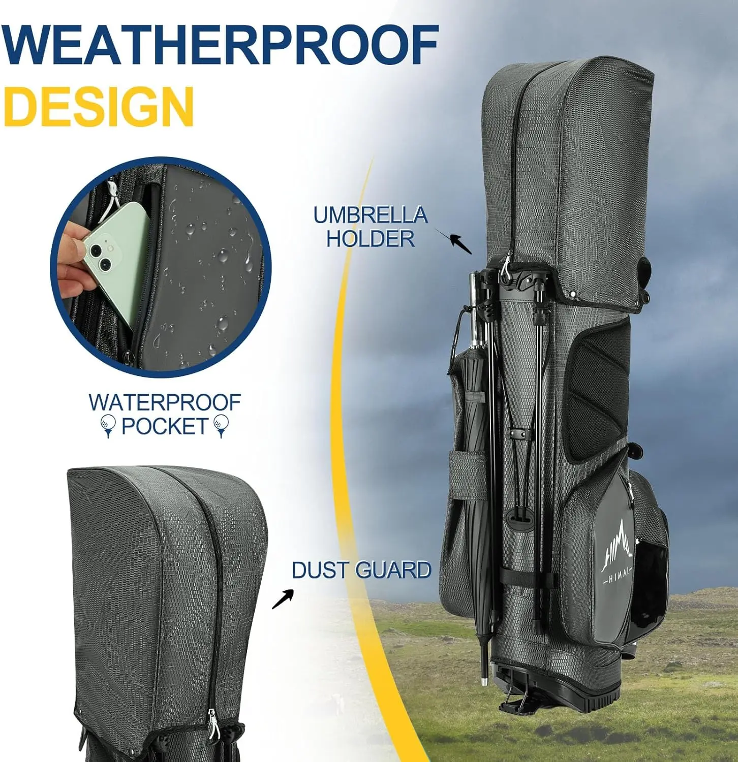 【THOUGHTFUL DESIGN UPGRADE】High density material and PU leather features splash-proof, rip-stop and durable. It has beautiful looks, long lifespan and good performance. This golf bag for men and women has some delightful features, including an umbrella holder, tee holder, dust cover hood, towel ring with Velcro glove attachment