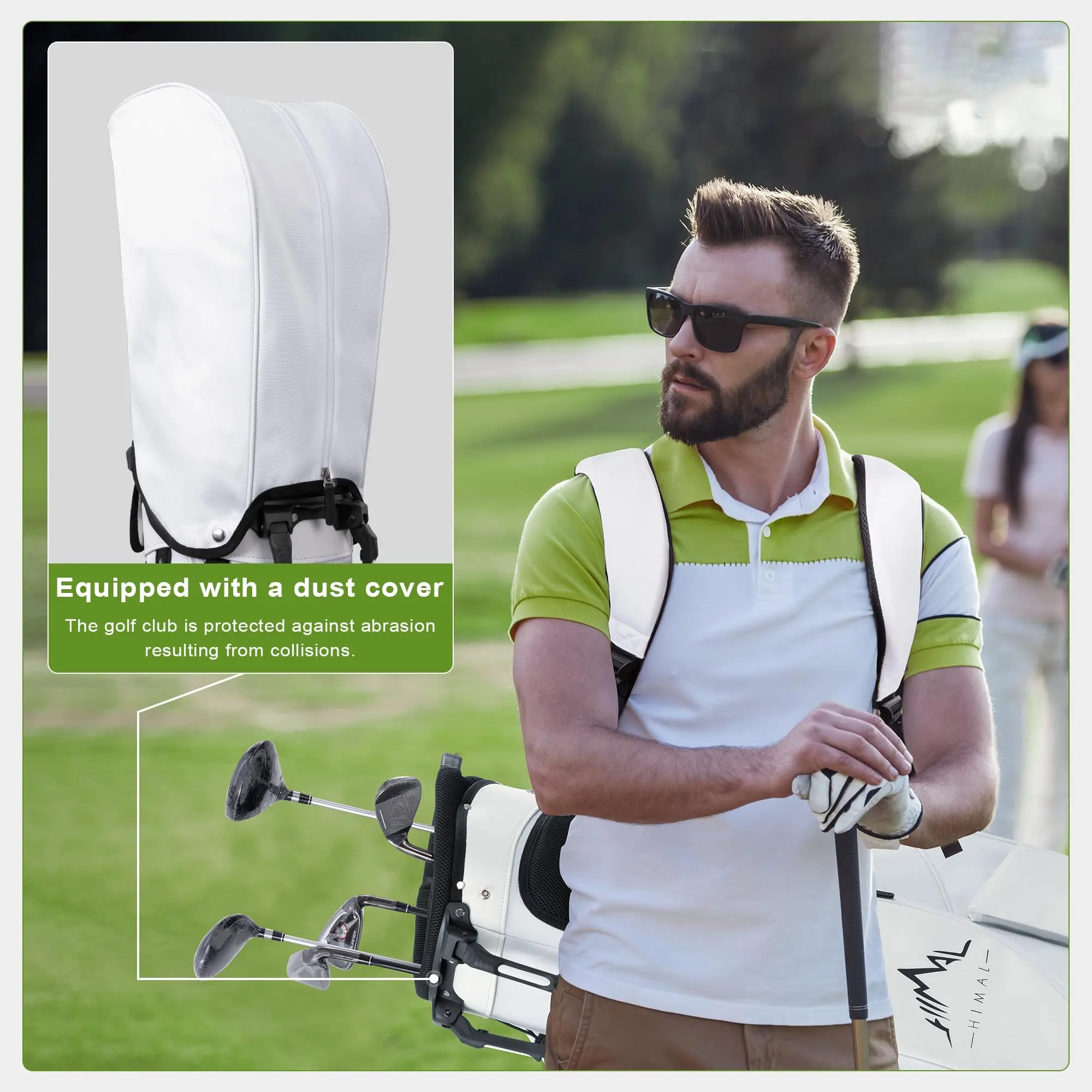 UNIHIMAl Lightweight Golf Stand Bag with 5 Way Full-Length Dividers, Semi-Concealed Stand, Folding Base, Adjustable Dual Straps and 8 Pockets White