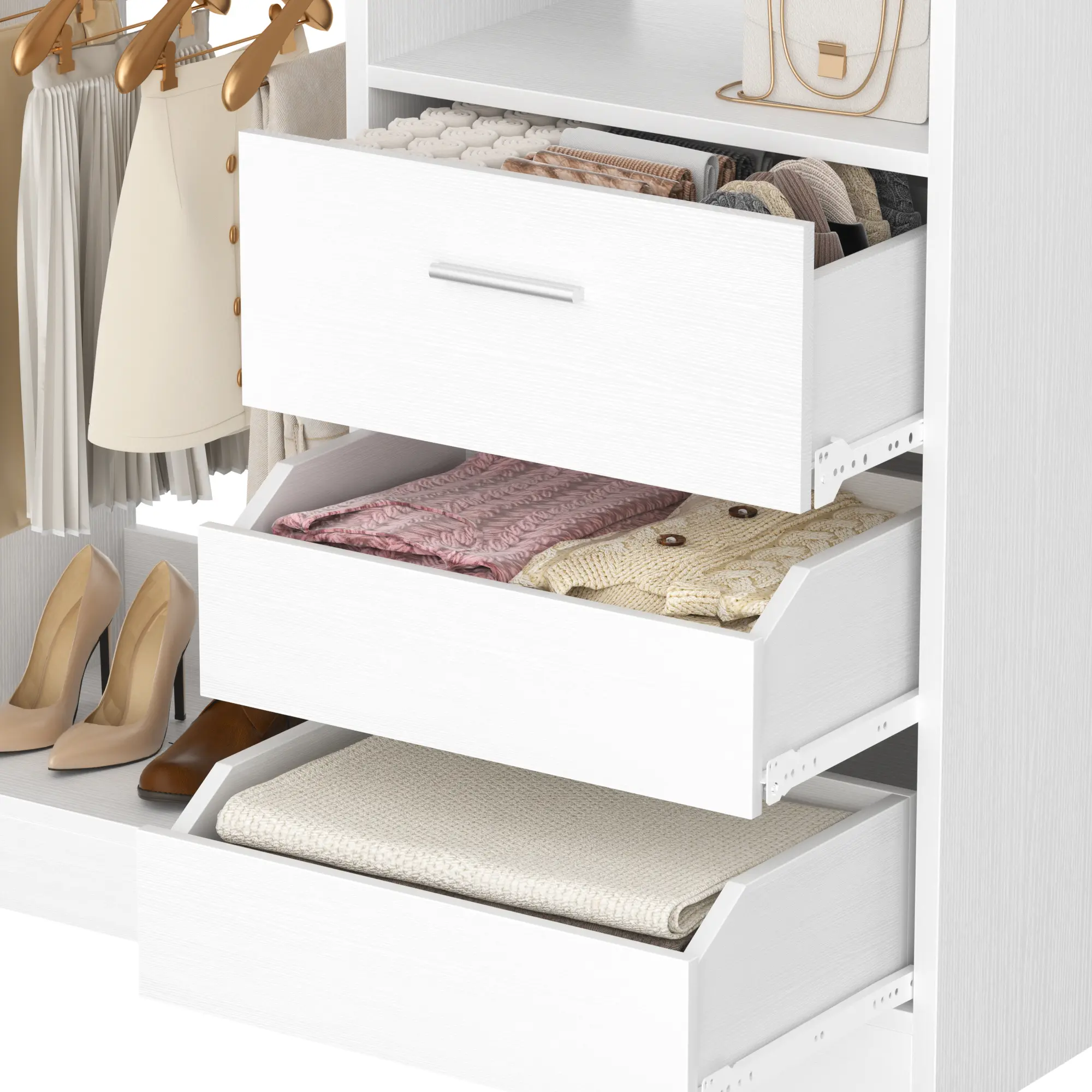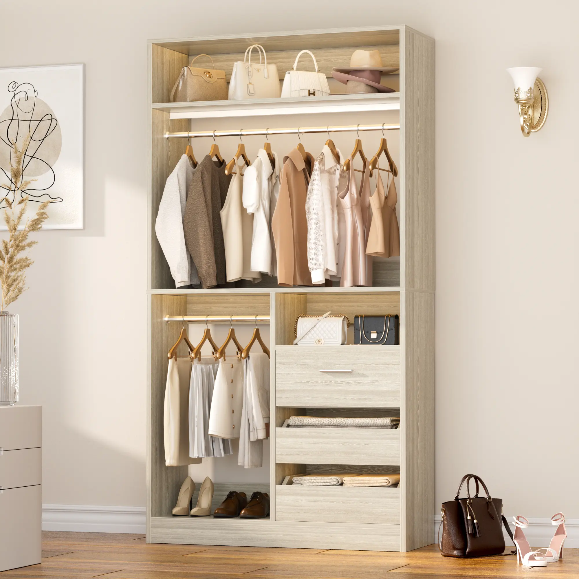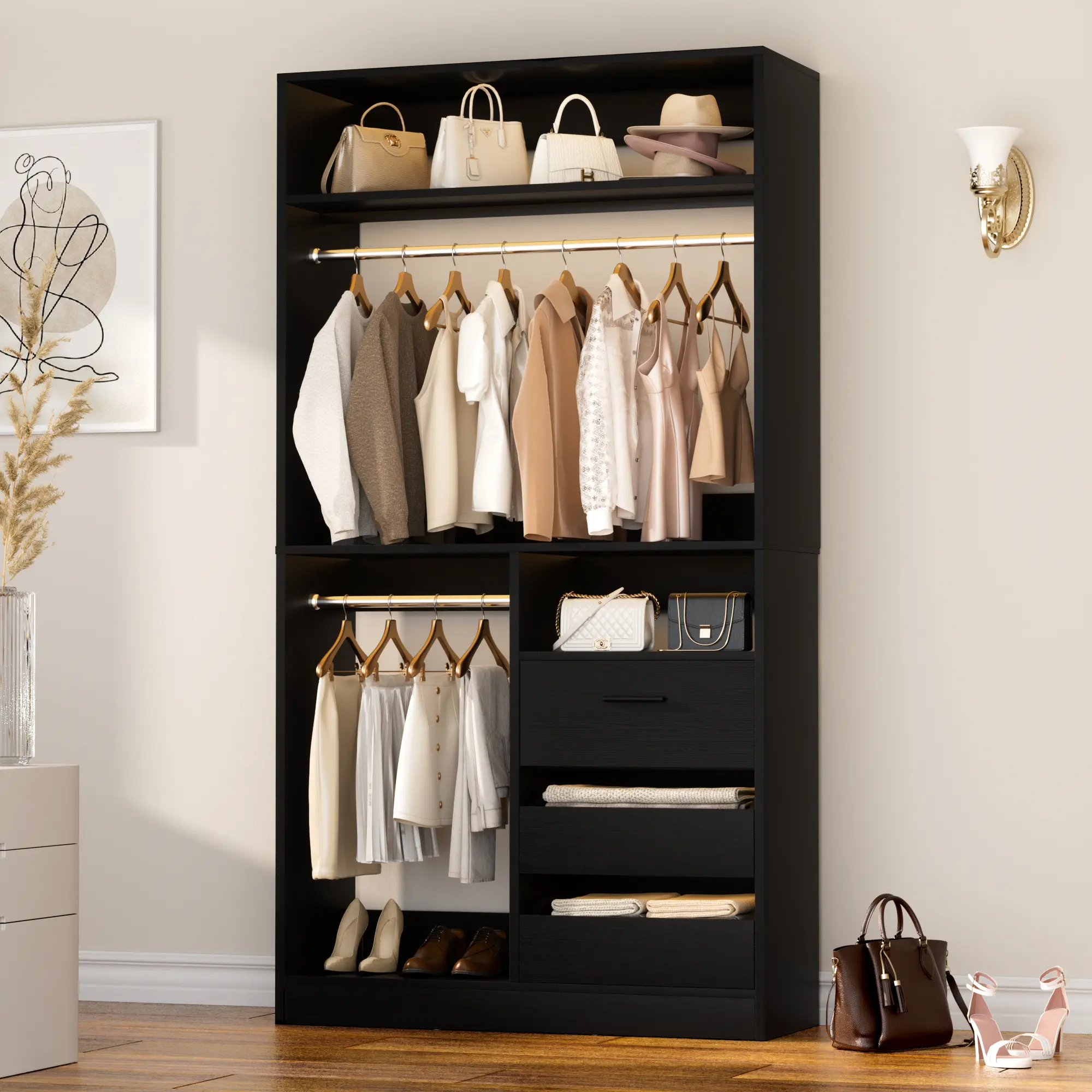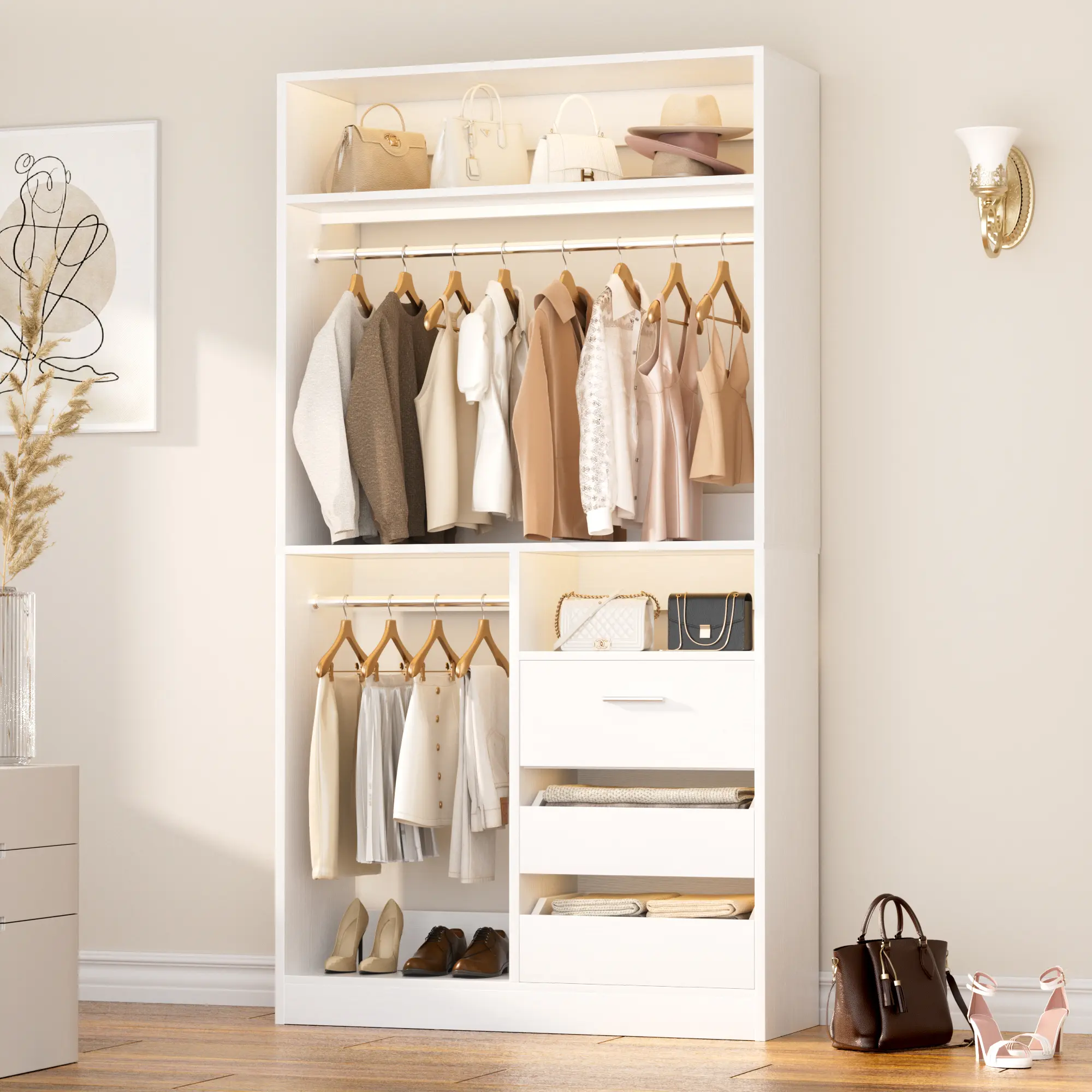 ·Top Open Shelf: An open - top storage layer is perfect for placing bags, hats, and other accessories. It offers easy access and can serve as a display area for your favorite fashion items, allowing you to showcase and pick out outfits effortlessly.