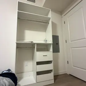 ·Bottom SectionDrawers at the bottom are suitable for storing seasonal clothes, bedding, etc.The open space beneath the drawers is designed for often - worn shoes, making shoe - changing convenient and keeping your footwear organized.