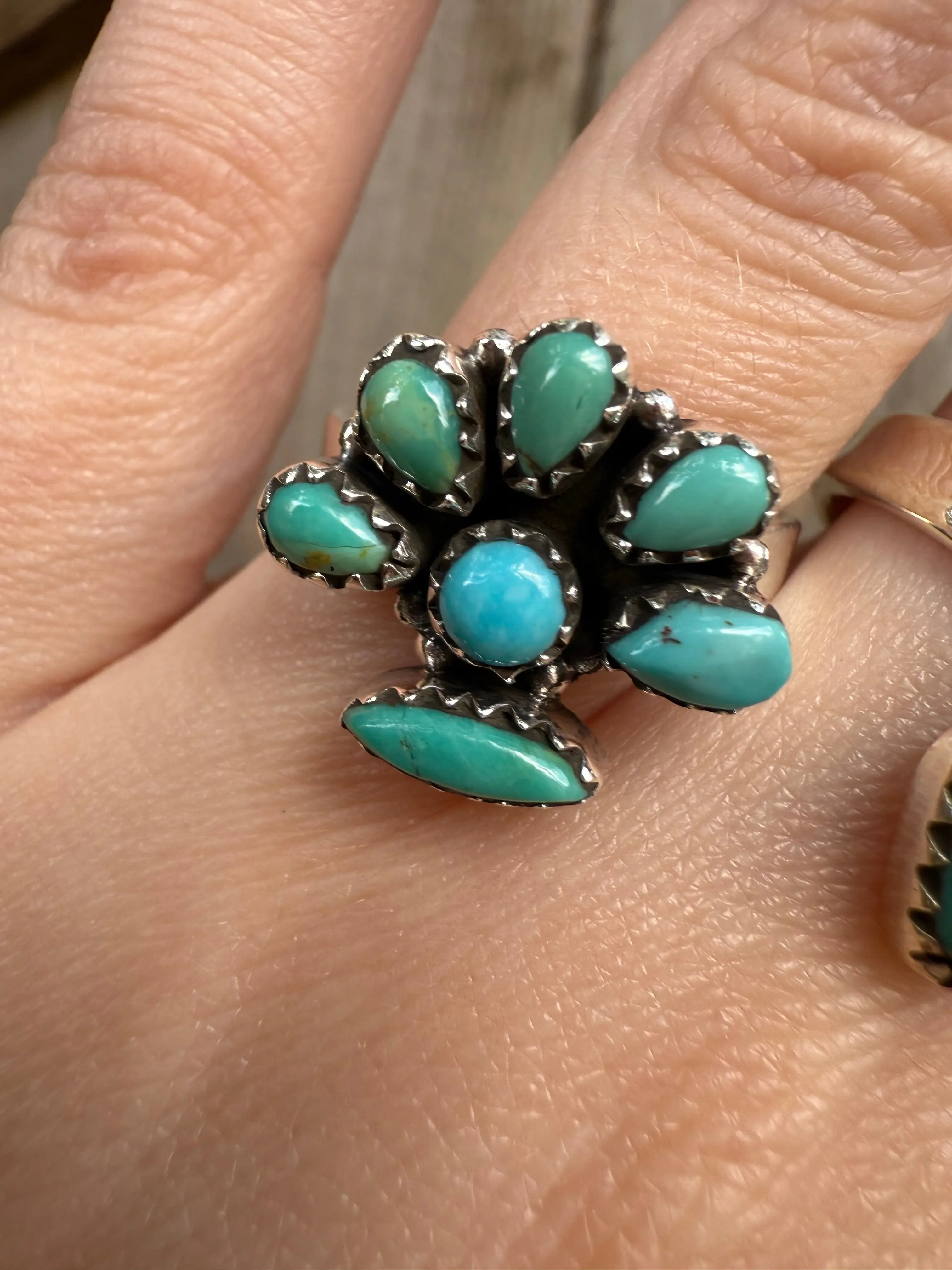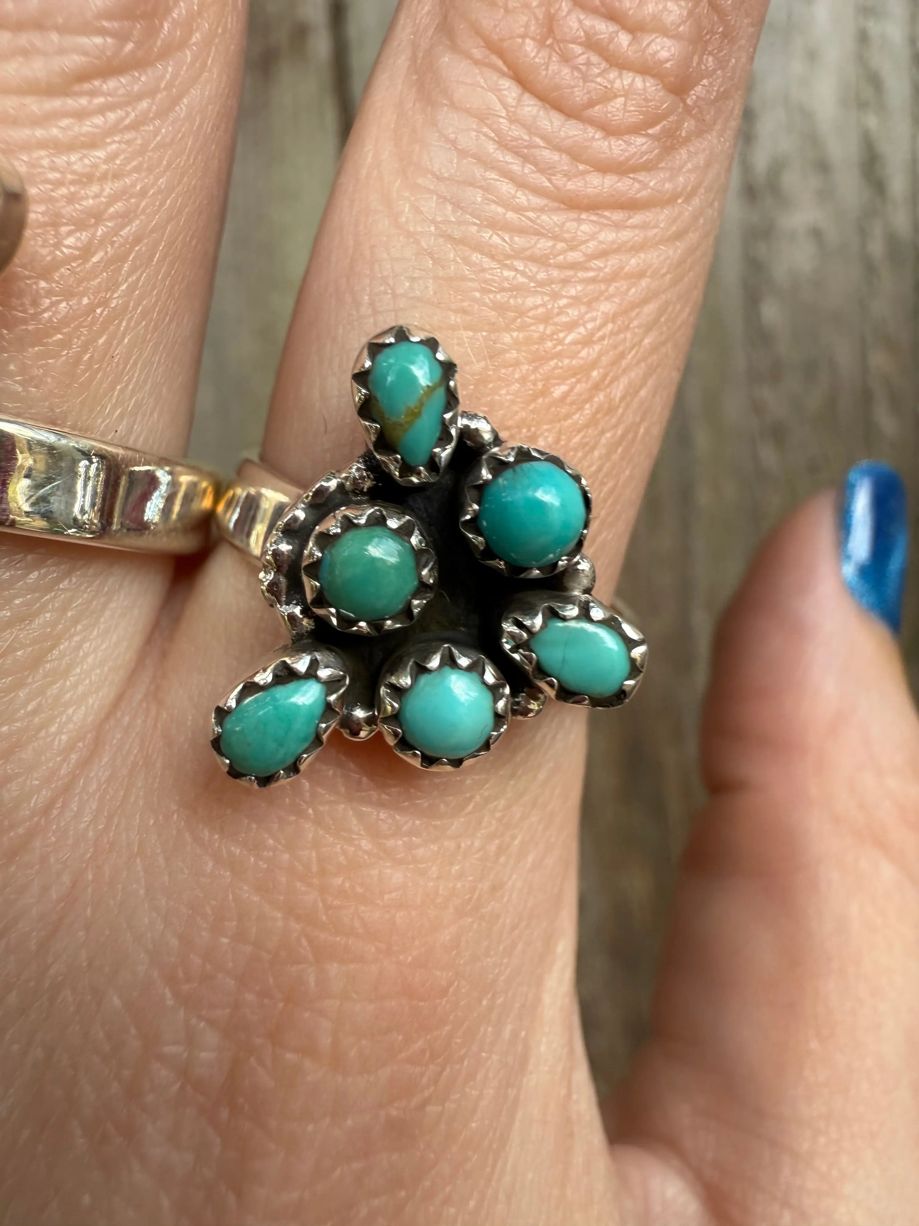 Unique Kingman Turquoise Sterling Silver Adjustable Ring