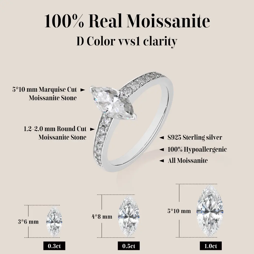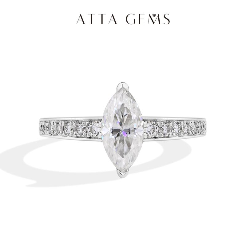 Discover the ATTAGEMS D VVS1 Color Marquise Shape 1CT Lab-Created Moissanite Ring, perfect for women and men. This unisex piece is crafted from 925 Sterling Silver, ensuring durability and elegance. Ideal for engagement or wedding, it's a versatile addition to any jewelry collection. A thoughtful gift for special occasions.