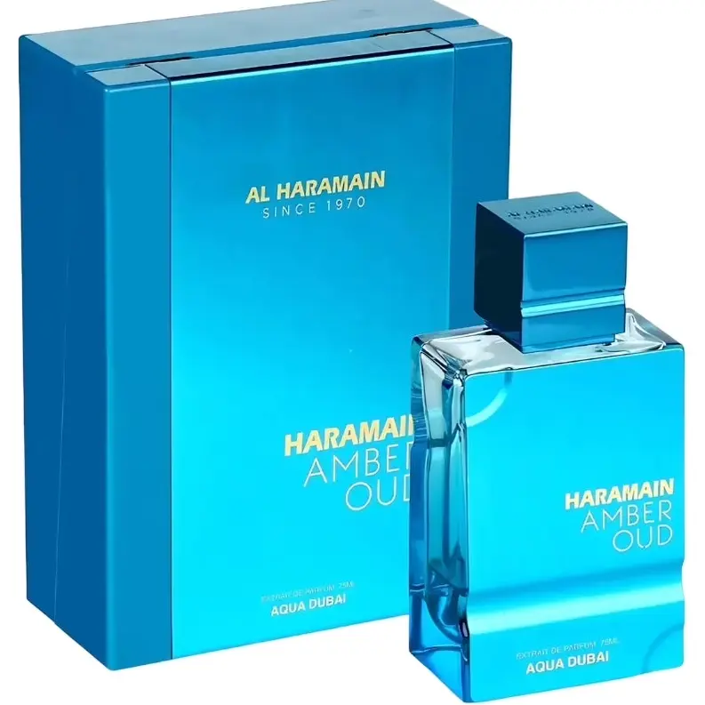 Al Haramain Unisex Amber Oud Aqua Dubai Extrait de Parfum Spray is a captivating fragrance in a sleek blue box. This 3.38 oz spray offers a unique blend of amber and oud, perfect for any occasion. The unisex design makes it suitable for both men and women. Experience the essence of Dubai with every spritz.