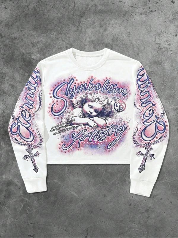 Unisex Streetwear Angel Print Design Sweatshirt, Loose-fitting Casual Long Sleeve Crewneck for Fall & Winter Fashion