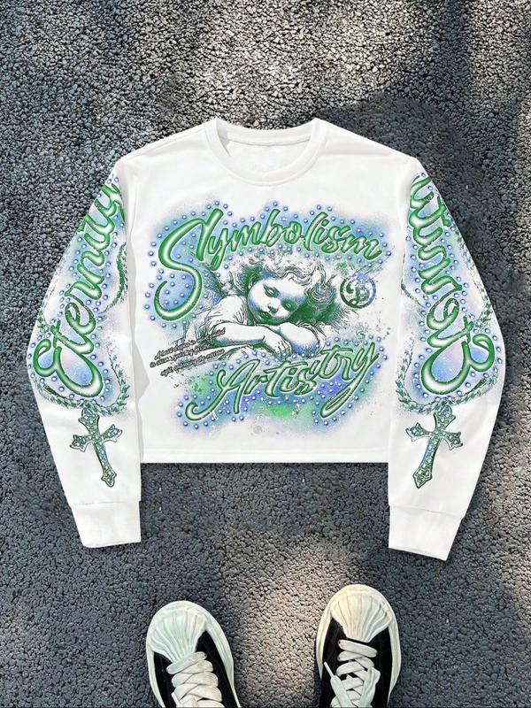 5. Unisex Streetwear Angel Print Design Sweatshirt, Loose-fitting Casual Long Sleeve Crewneck for Fall & Winter Fashion