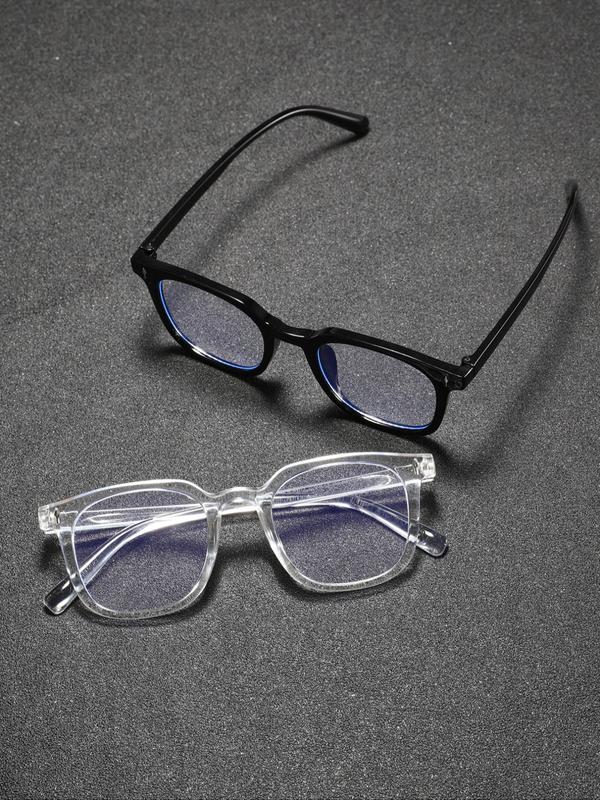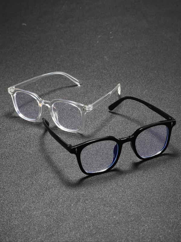 Unisex Classic Simple Non-Prescription Transparent Lens Glasses, Square Frame, Suitable for Daily Life, Office, Business Wear, 1 Pair/2 Pairs
