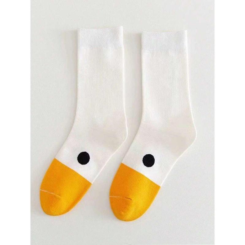 (Gold promotion)1 Pair Unisex Cute Cartoon Goose & Duckling Mid-Calf Socks, Fashionable And Versatile, Suitable For Autumn/Winter
