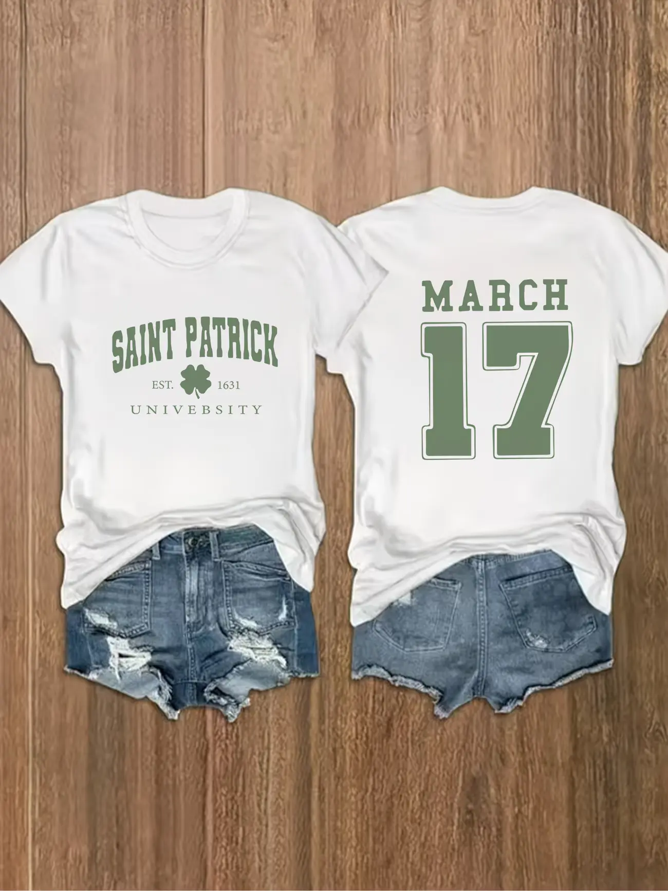5. [Front and Back Double Image] Unisex Double-Sided T-Shirt St. Patrick's University Letter Print Large Size Crew Neck
