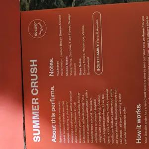 Summer crush was the perfect name for this scent. I am sometimes horrible at descriptions of scents but this smells like all the best parts of summertime. It