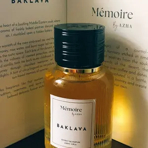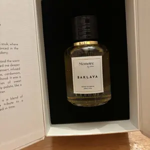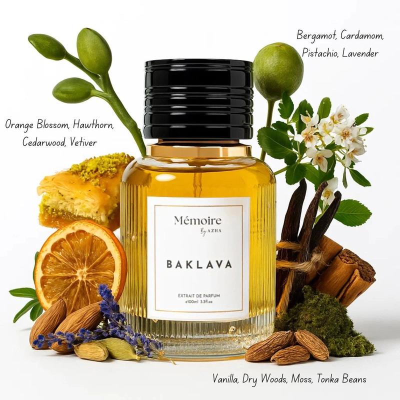 Baklava by Azha is a sumptuous unisex fragrance that marries sweetness, spice, and woody depth in perfect harmony. The opening bursts with the lively zest of bergamot, warmed by aromatic cardamom and enriched with the nutty allure of pistachio, while lavender adds a gentle touch. In the heart, delicate orange blossom and hawthorn mingle with the sophistication of cedarwood and vetiver, creating an elegant floral-woody blend.