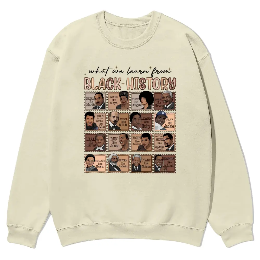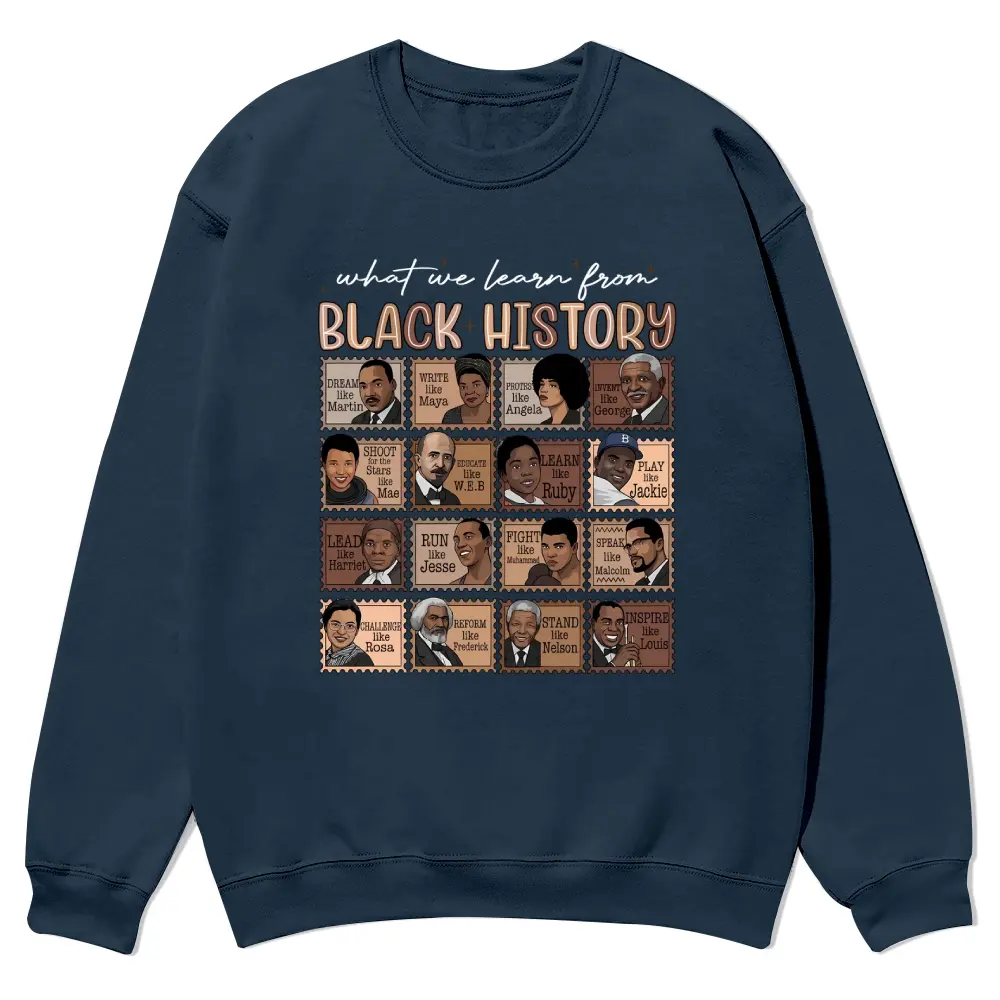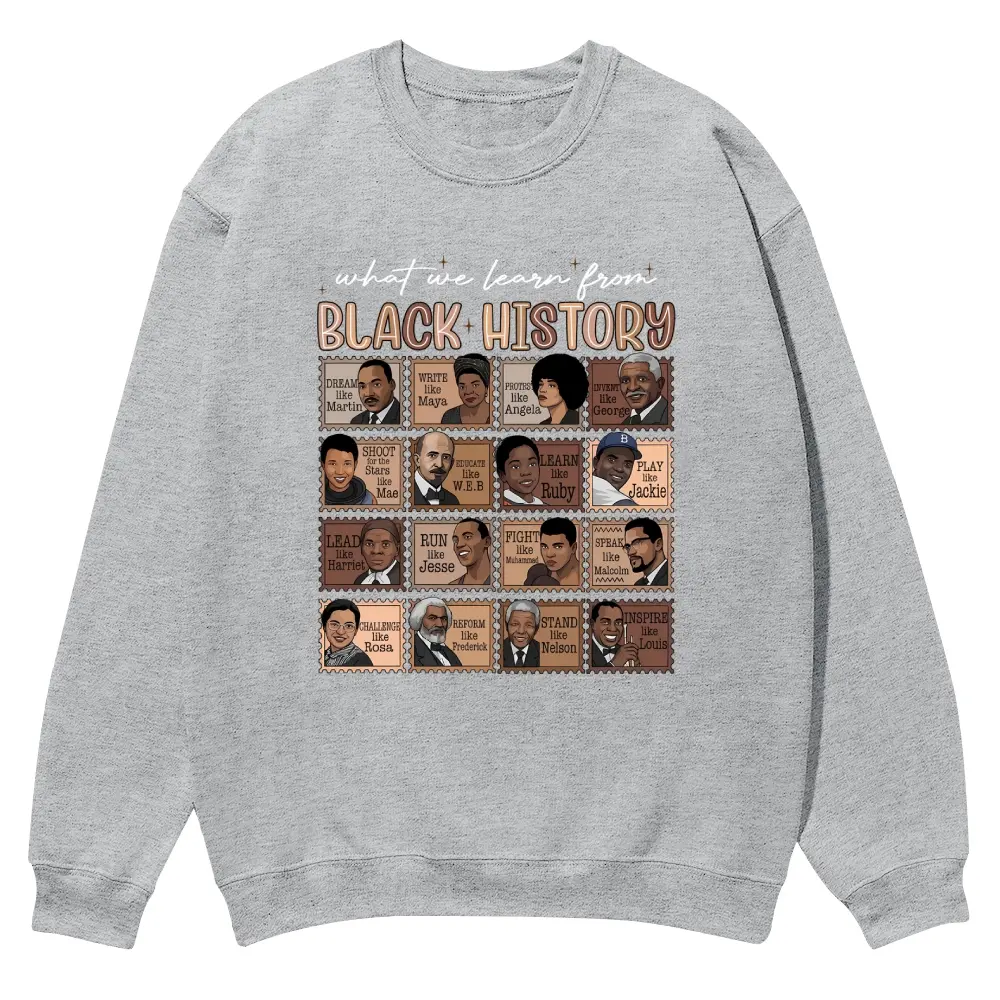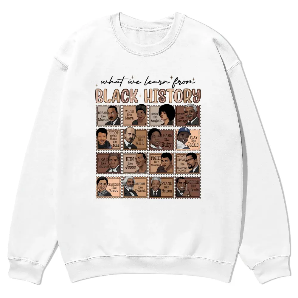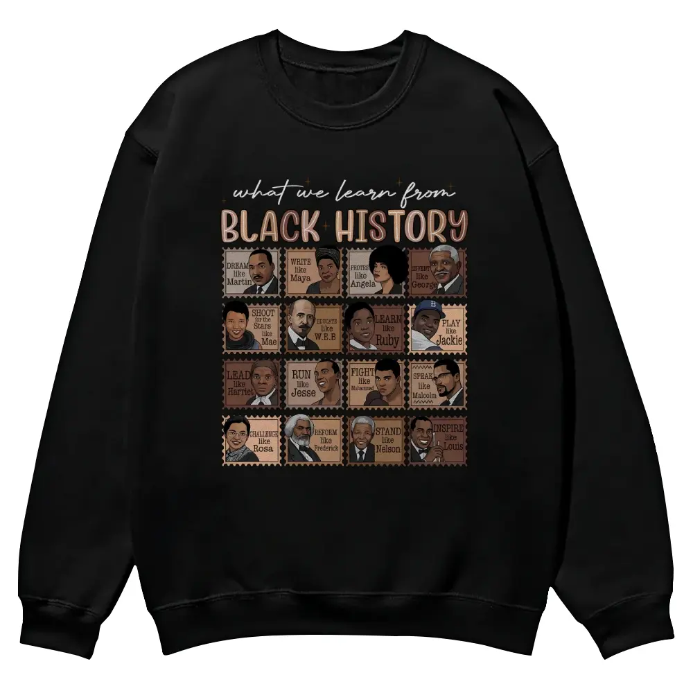 5. “What We Learn From Black History” Proud Shirt Crewnecks for men and women, full color fall sweatshirts, fun and cozy patterned sweaters, unisex fall clothing