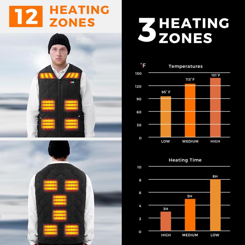 Crafted from waterproof and windproof fabric, this sleeveless vest offers comfort and ease of care. The cotton filling ensures warmth, while the 15-zone heating sheets maintain temperature. The material is skin-friendly, wrinkle-resistant, and machine washable (in a laundry bag) or hand washable. Keep your vest looking new with minimal effort.