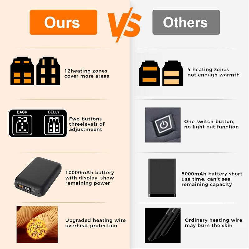The Rrtizan Heated Vest is a versatile choice for men and women. It features 15 heating sheets with carbon fibre and TPU materials for quick heating. The vest targets the abdomen, shoulders, back, and neck, enhancing blood circulation and muscle relief. Ideal for cold or rainy days, it's a great solution for bone pain. Stay warm without compromising on comfort.