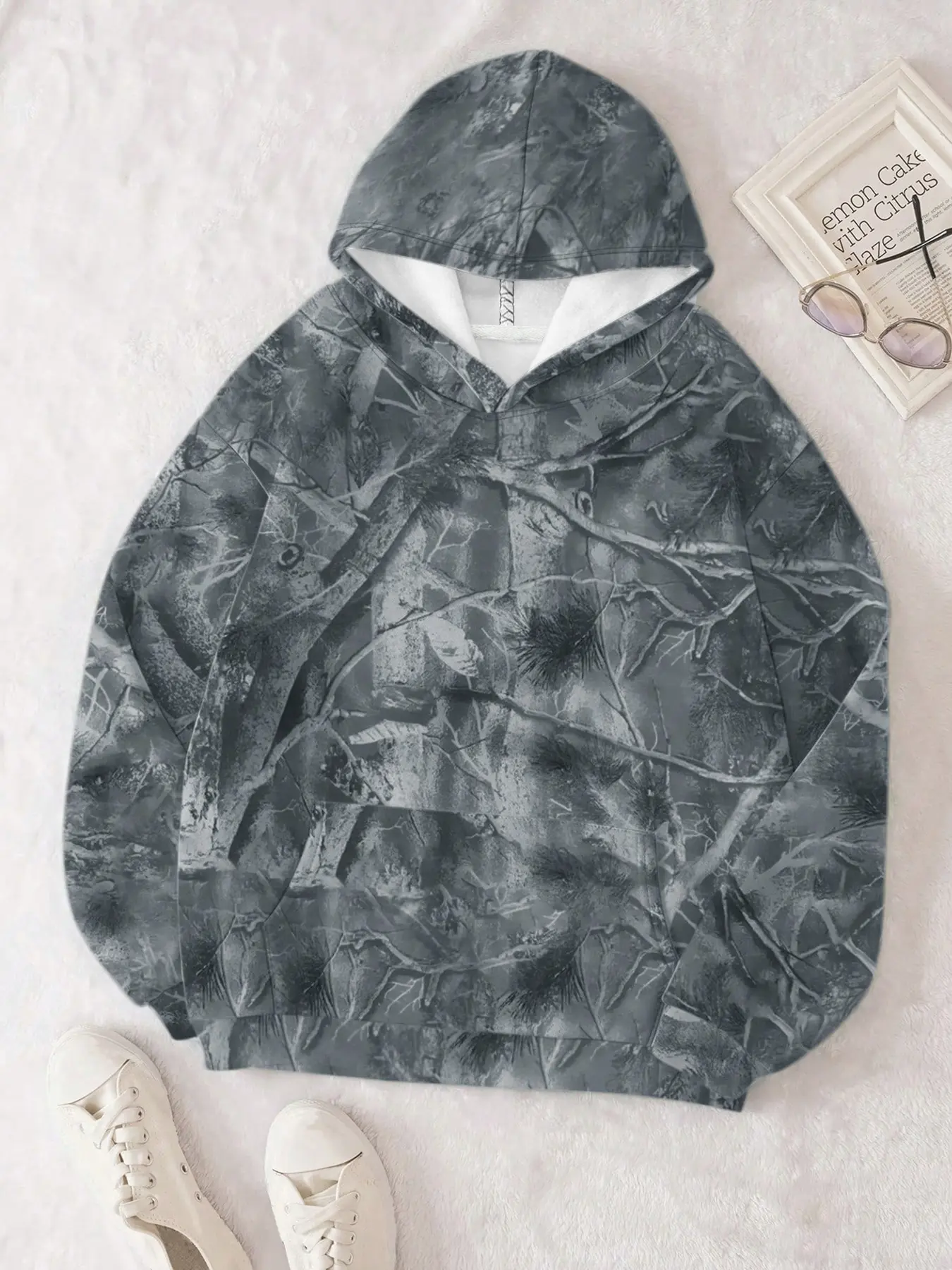 5. Unisex Hooded Sweatshirt, Casual Loose-Fit Branch Print Pullover, Fall & Winter Fashion, Comfortable Kint Fabric, One Piece