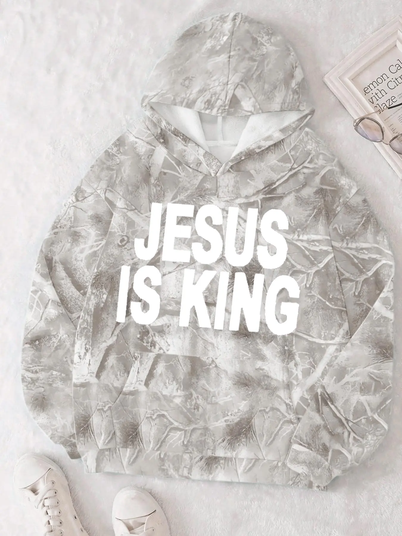5. Unisex Jesus is King Letter Print Casual Branch Long-Sleeved Fleece-Lined Loose Hoodie, Clothing suitable for spring and autumn,suitable for streetwear, Y2K style, couple outfits,Casual Daily Wear