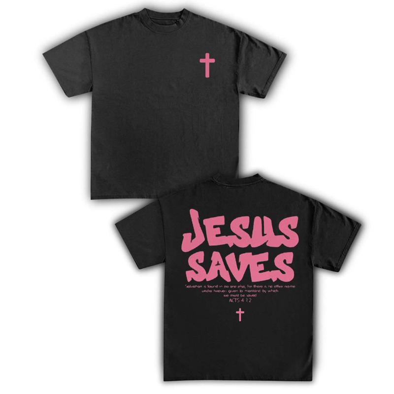 ·Graphic Print: "I Love Jesus" and "Jesus save" designs.