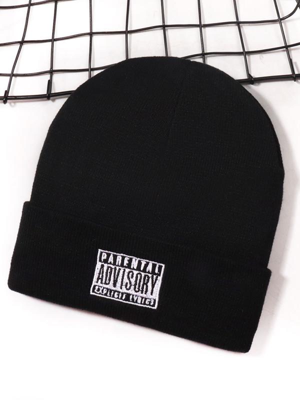 1pc Unisex  Beanie Knit Hats with Embroidered Letter, Outdoor Warm Headwear, New Fashionable Brimless Cap