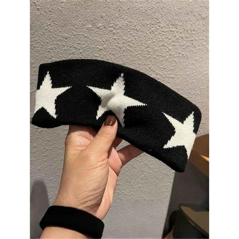 Unisex Knitted Embroidered Star Sports Headband Y2K Style Sweat-Absorbent Hair Accessory For Gym Running Yoga Casual Wear Trendy Comfortable Stretch Fit For Daily Activities vacation