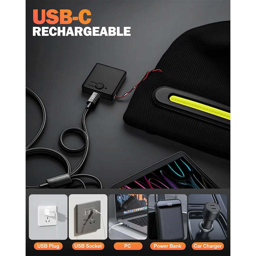 Equipped with 30 advanced COB LEDs delivering 250 lumens of light, this hat provides up to 4 hours of continuous runtime. Featuring a modern USB-C port, it recharges easily in your car, with a power bank, or via computer—making it as convenient as it is reliable.