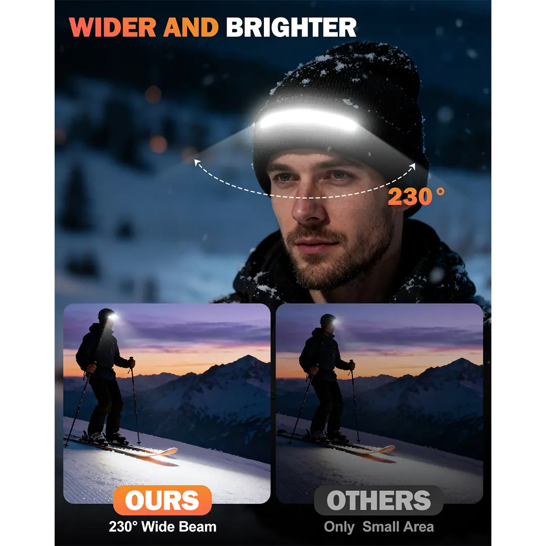 Choose from three brightness modes—high, medium, and low—to adapt to any situation. Whether you need a soft glow for close-up tasks or a bright beam for darker environments, this beanie offers optimal visibility with just a click.