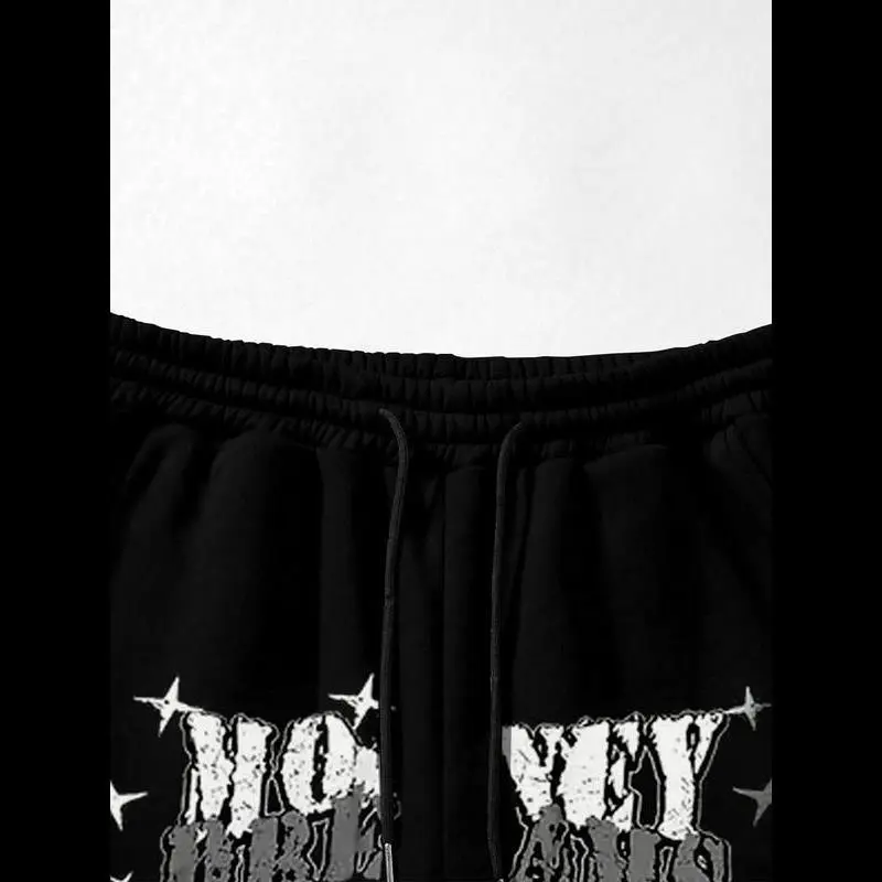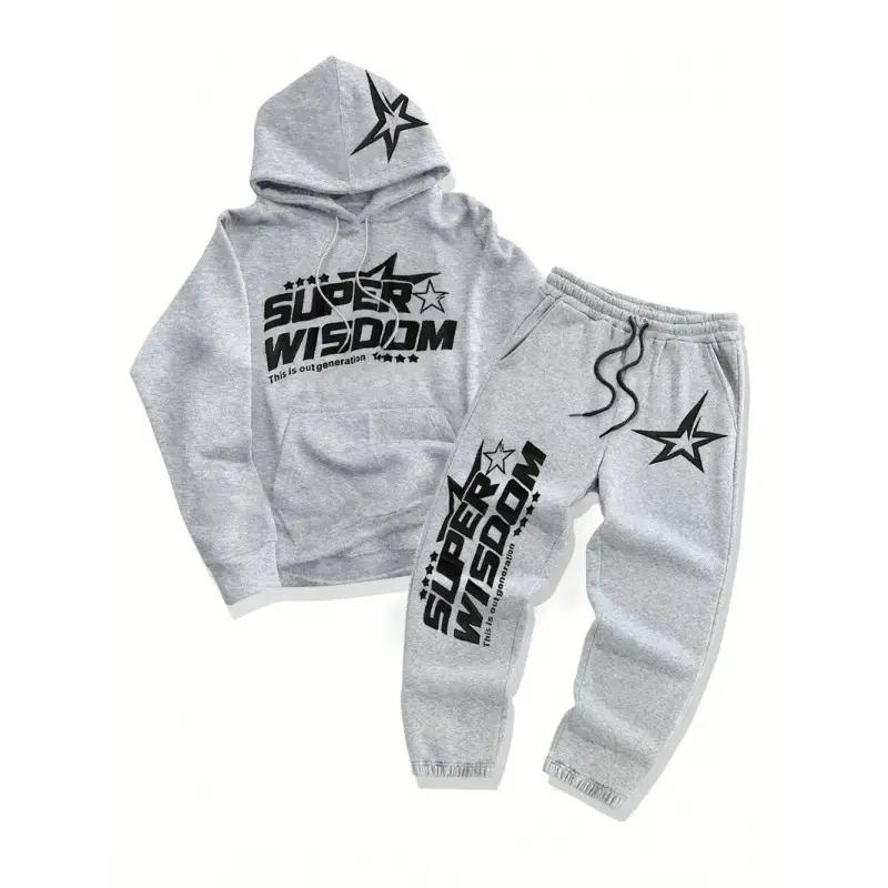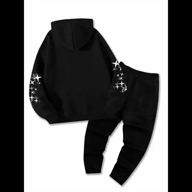 5. Unisex's Letter & Stars Print Hoodie & Sweatpants Set, Regular Fit Casual Street Long Sleeve Hooded Pullover & Jogger Pants, Unisex's Spring & Fall Clothes