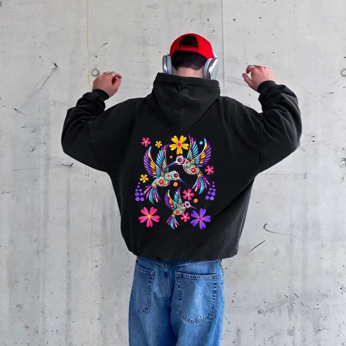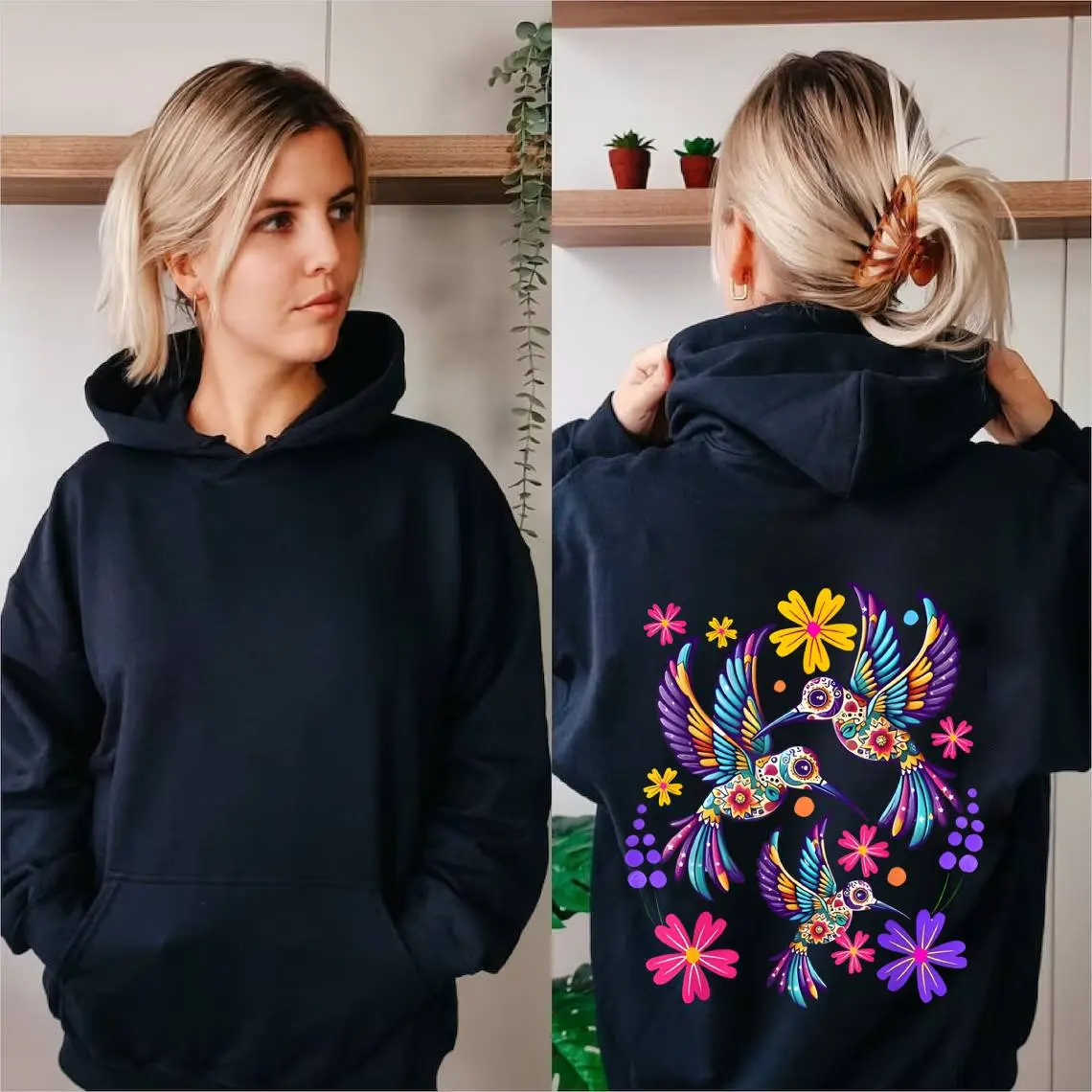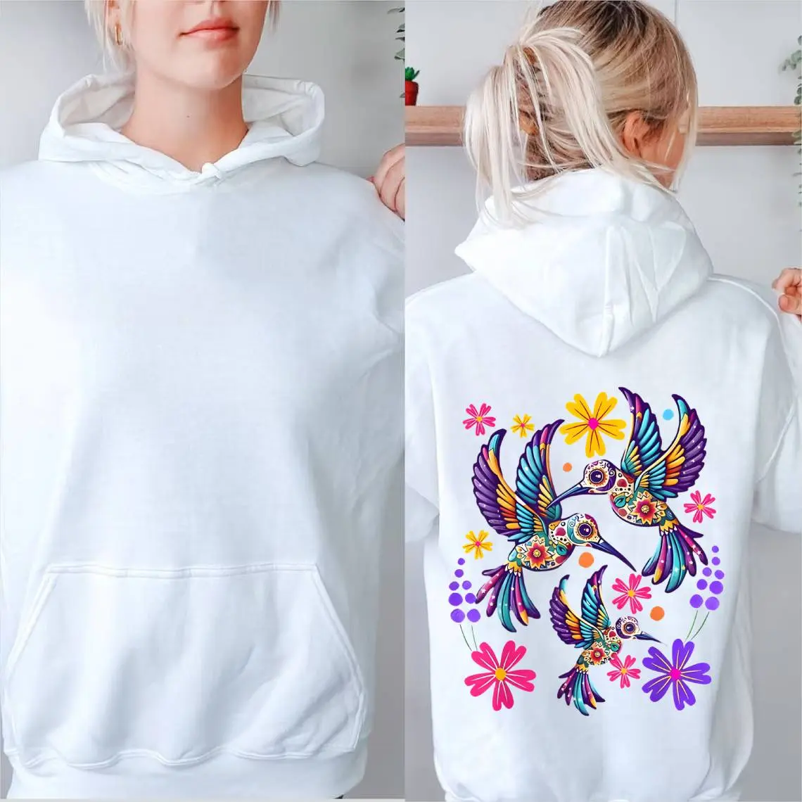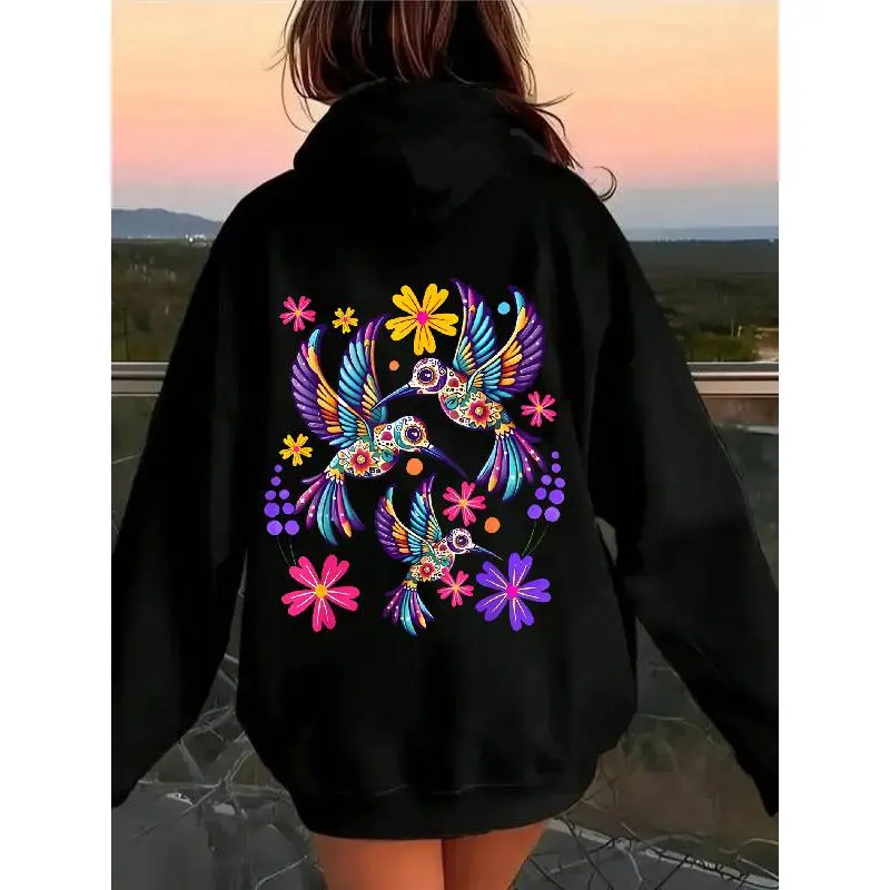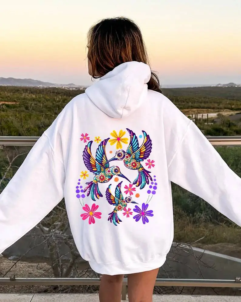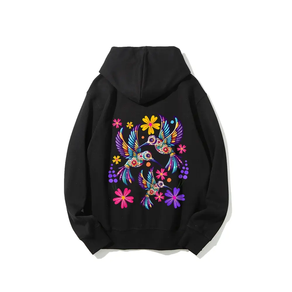 5. 100% Cotton Unisex Hummingbird Colorful Mexican Flowers Bird Floral Nature T-Shirt Hoodie Unisex Oversized Drawstring Hooded Cotton Sweatshirt with Front Pocket for Daily Wear Comfort Hoodie for All Genders Printed Unisex Casual Hoodie Christmas Gift