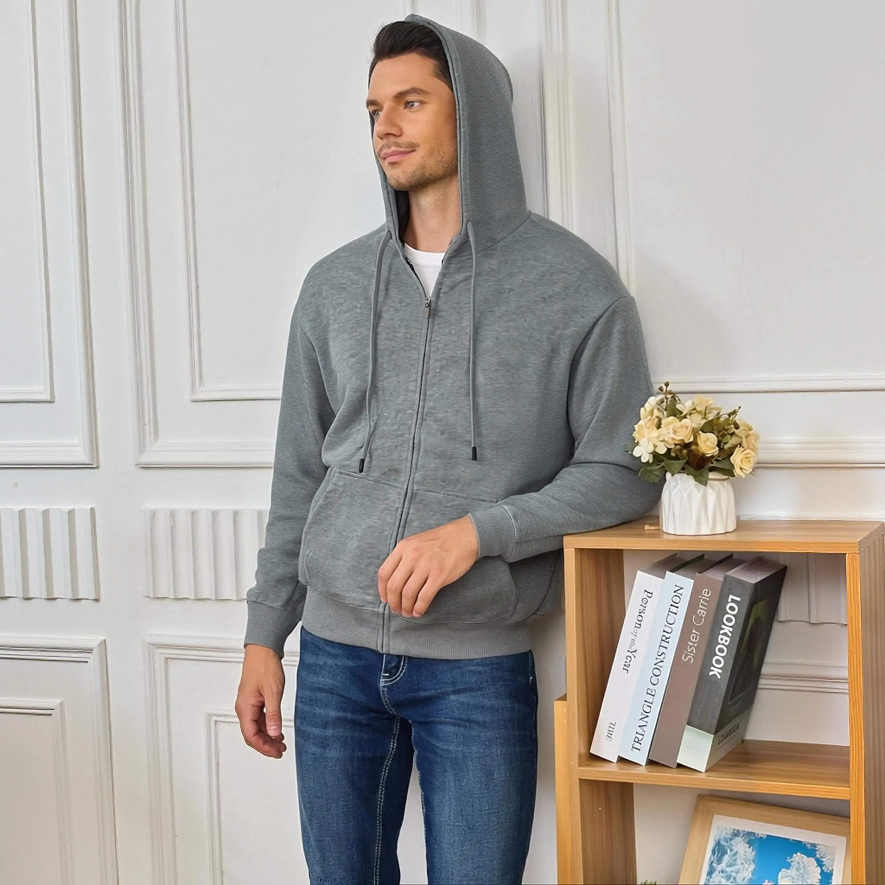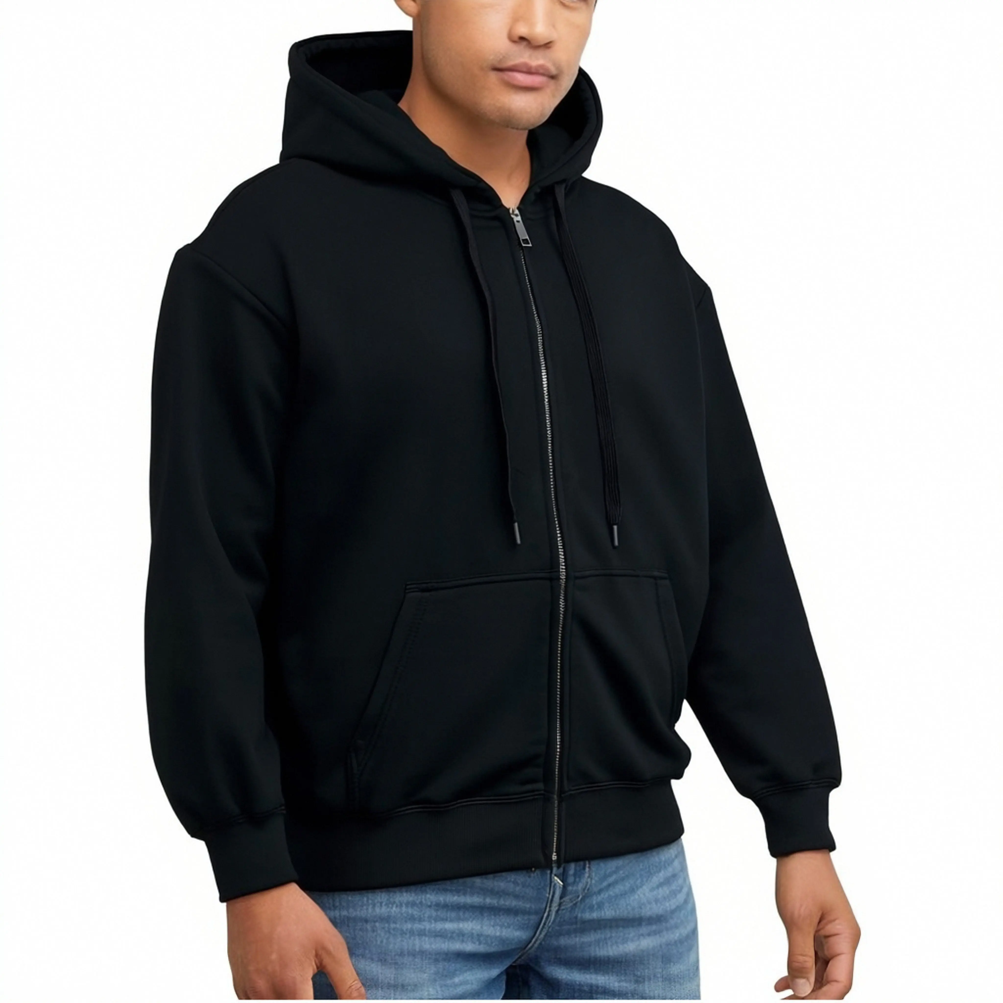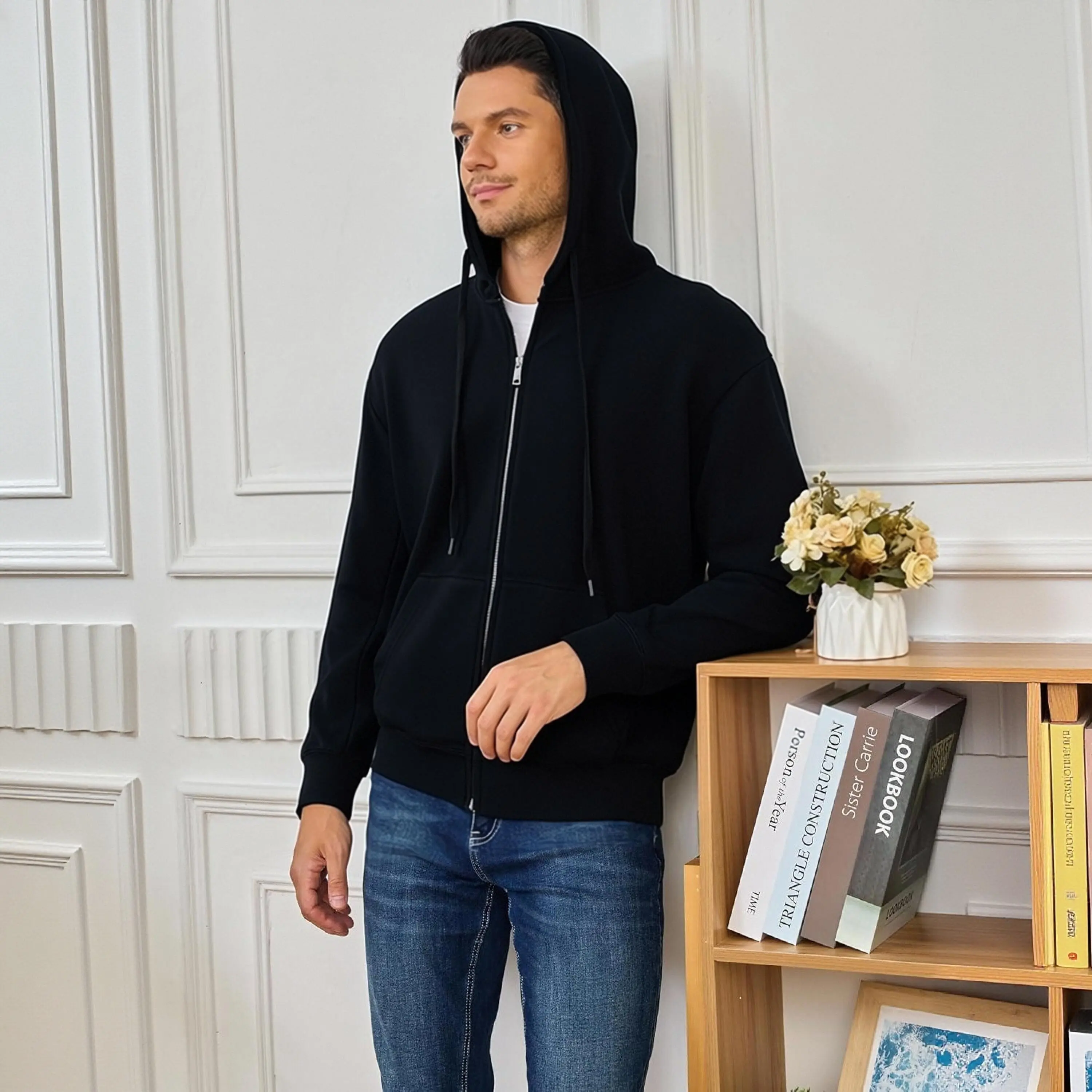 Stylish Mens Sweatshirts Hoodies Design: Mens heavyweight hoodie features a full zip, long sleeves, dropped shoulders, solid color, ribbed cuffs and hem, hood, metal zipper and large kangroo pockets on both sides that can hold phones. Loose fit baggy hoodies for men, perfectly show a trendy retro streetwear vibe.