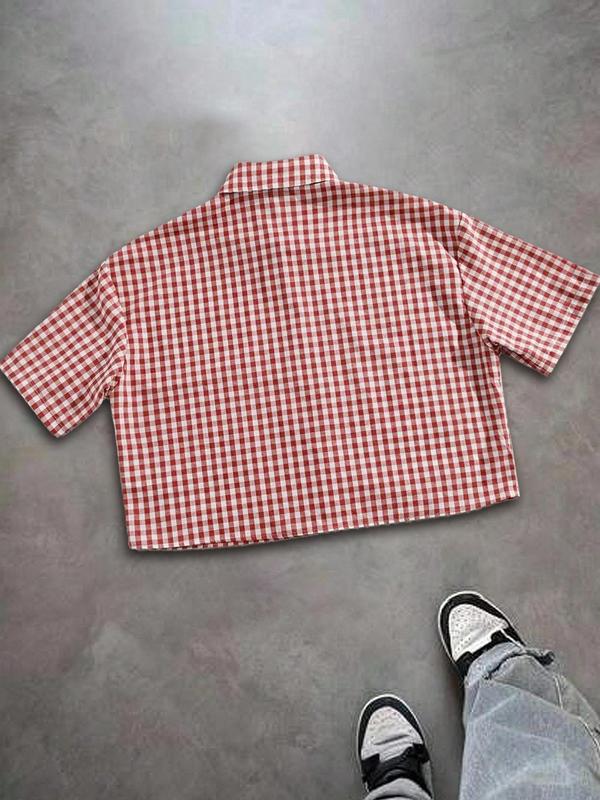 This unisex plaid shirt is a whole mood. The lip detail is such a sick touch! 🔥🔥🔥 #Y2KStreetwear #PlaidShirt #CroppedTop #fyp  #tiktokshopjumpstartsale