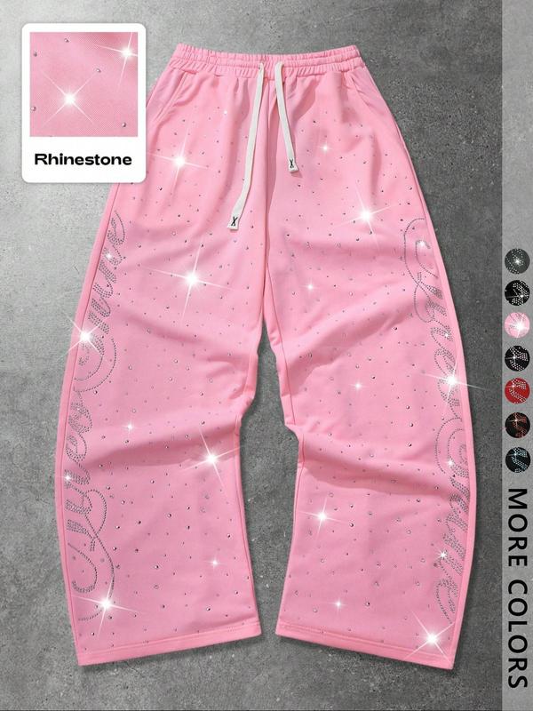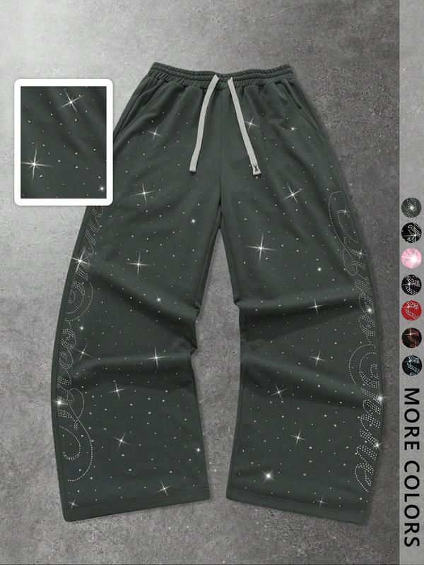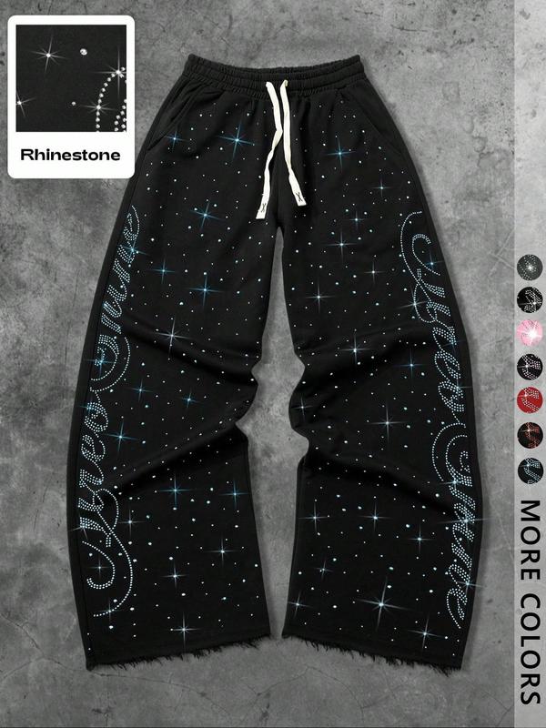 Unisex Rhinestone Starry Sky Sweatpants, Streetwear Fashion, Trendy Simple Design, Perfect for Hip Hop, Rap, Gym, Outdoor Activities, Athleisure Style Bottoms