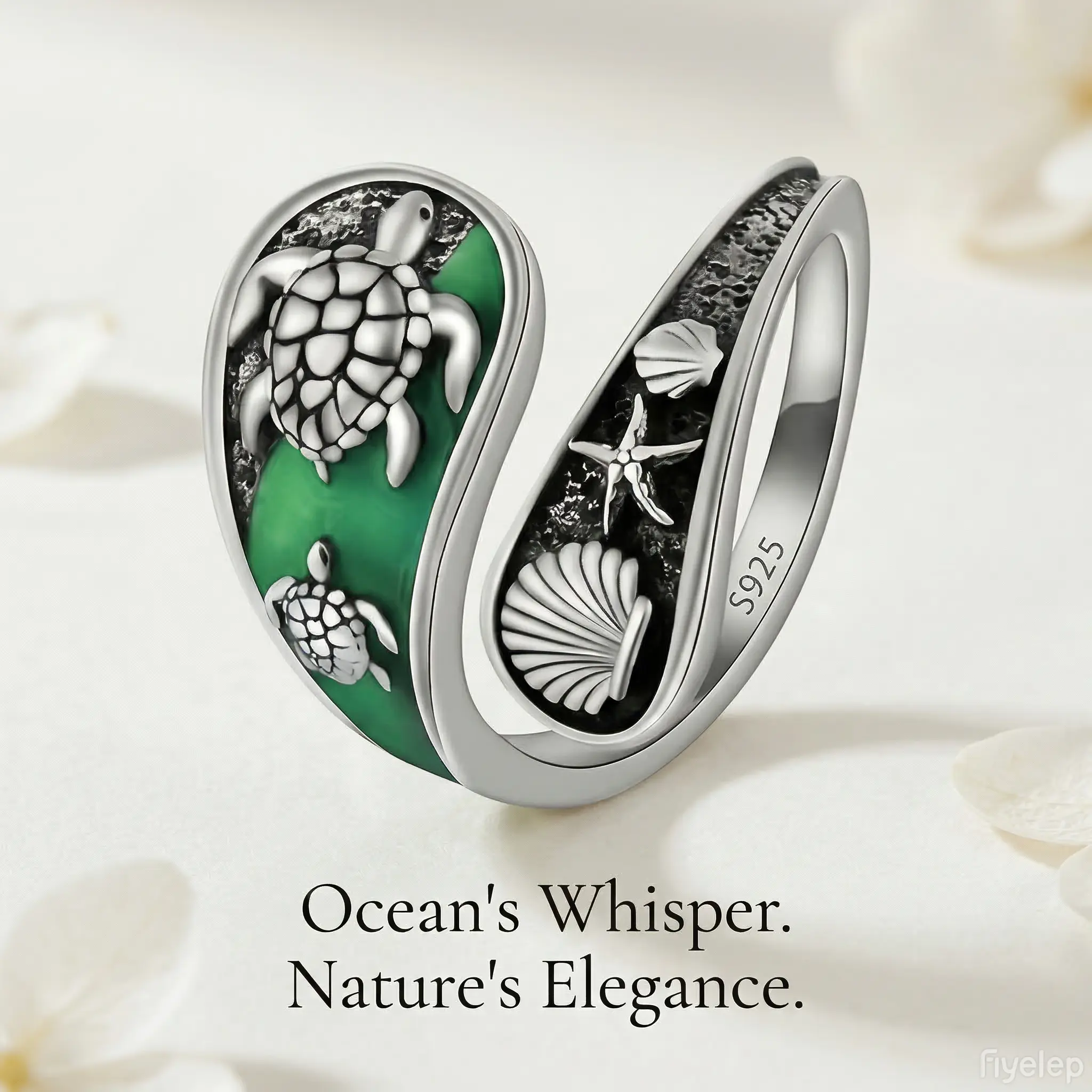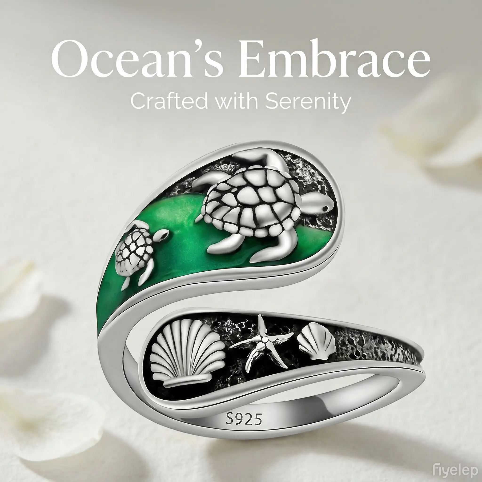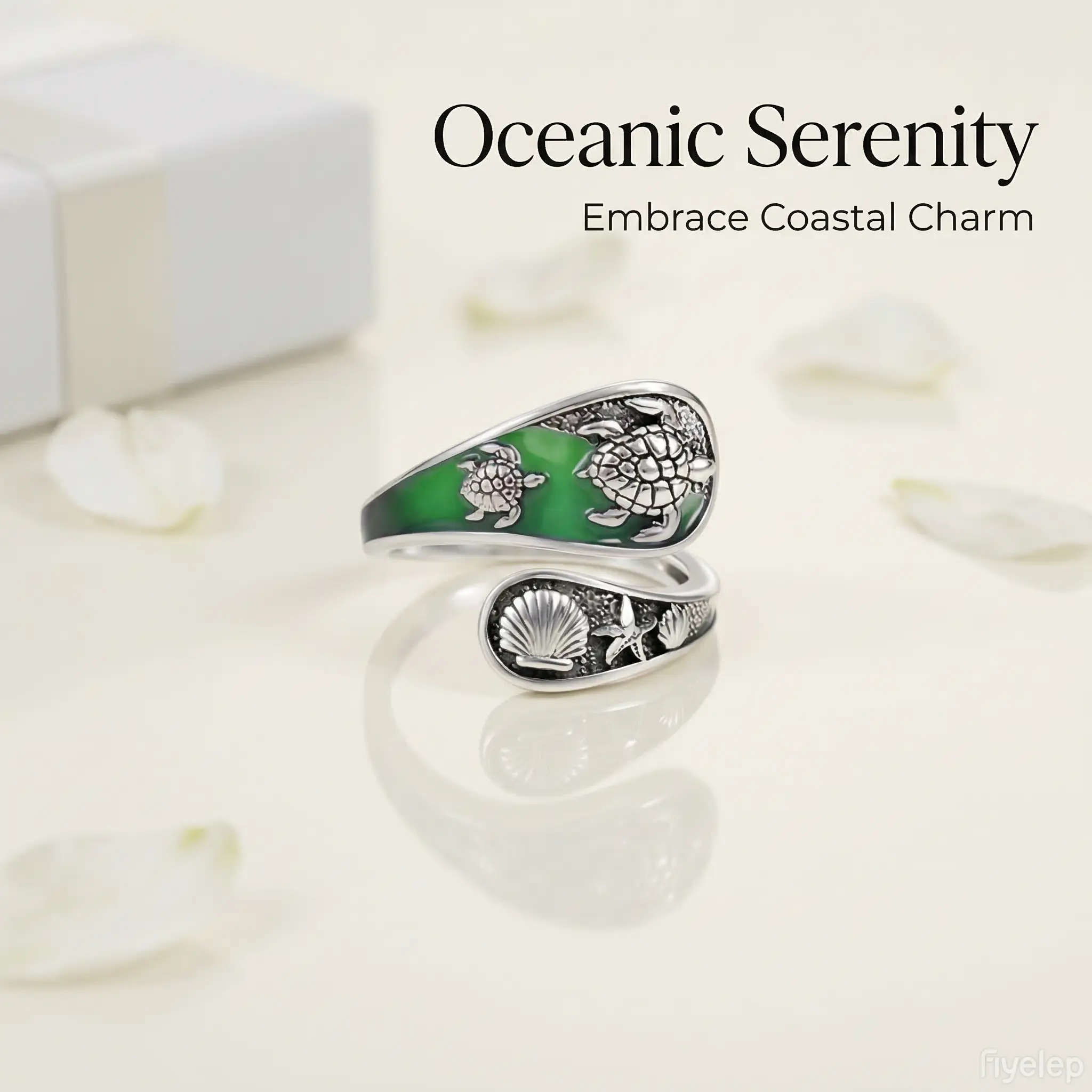 ·Jewelry Details: The ring showcases a green enamel background with silver sea turtle, shell, and starfish. It is ideal for beachwear or as a unique ocean-themed accessory. 🐚