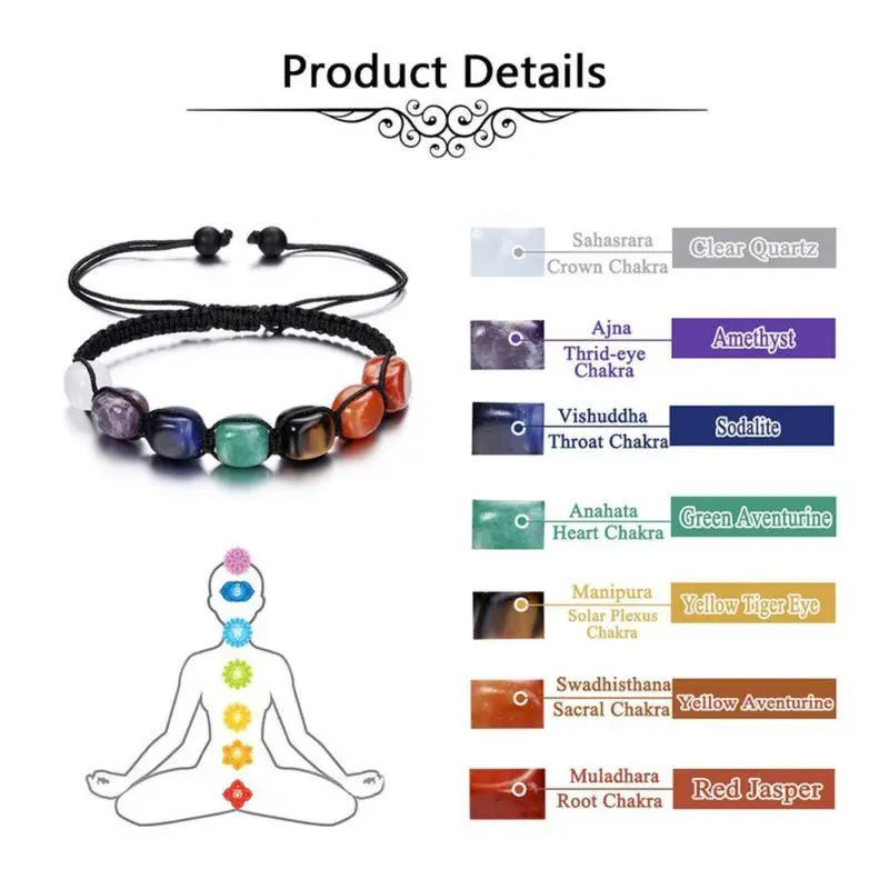 Unisex Seven Chakra Healing Bracelet – Natural Gemstone Adjustable Cord, Energy Balancing Jewelry for Men & Women