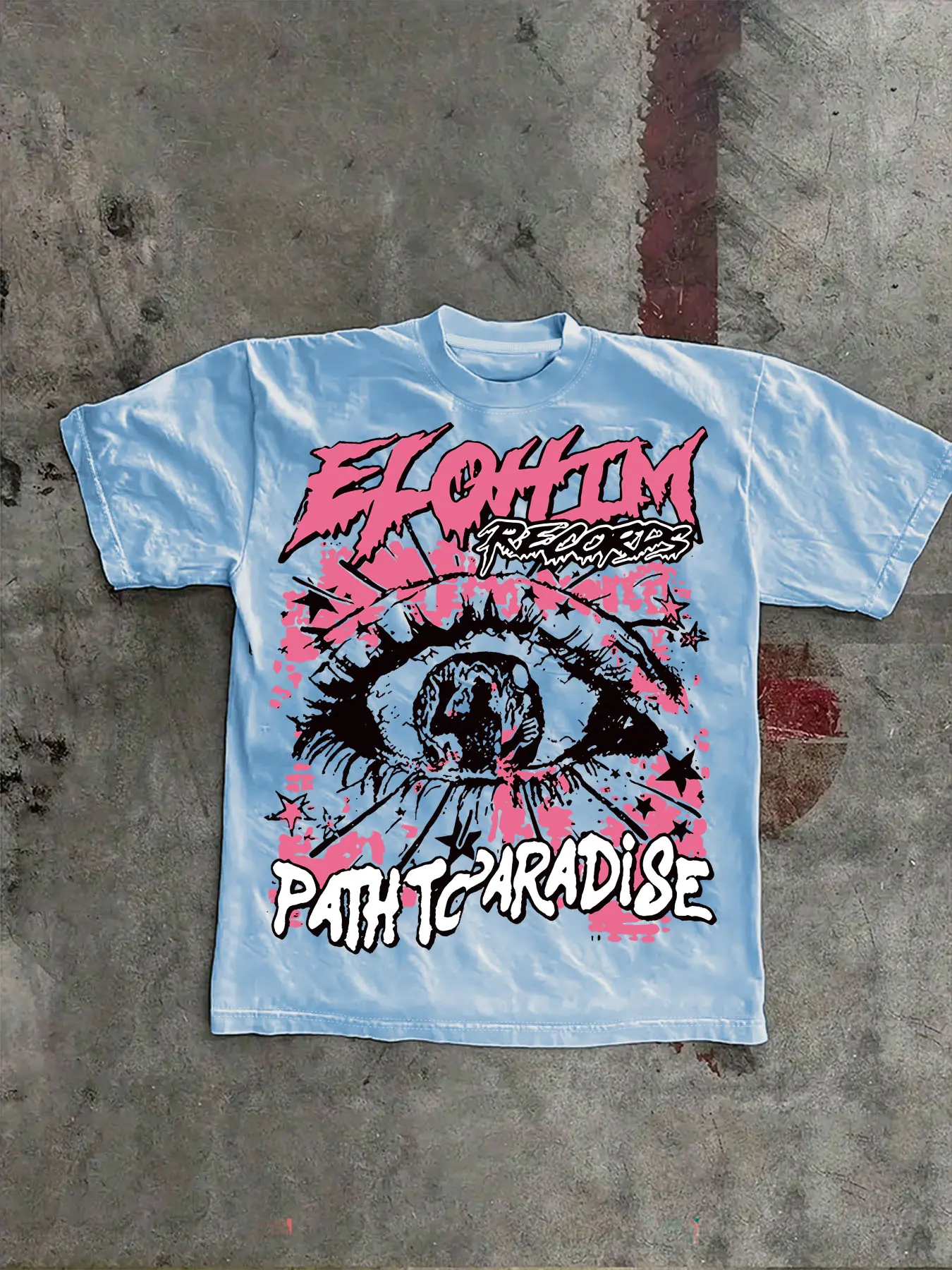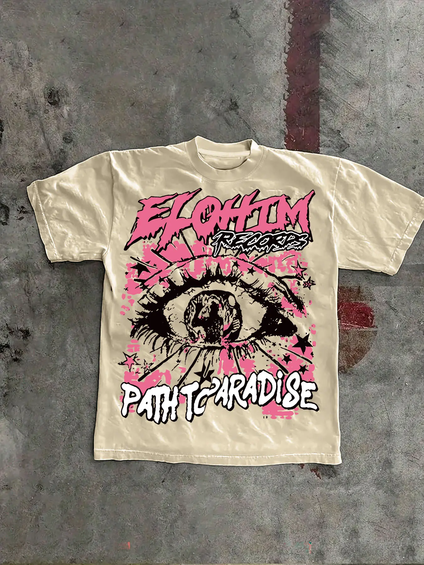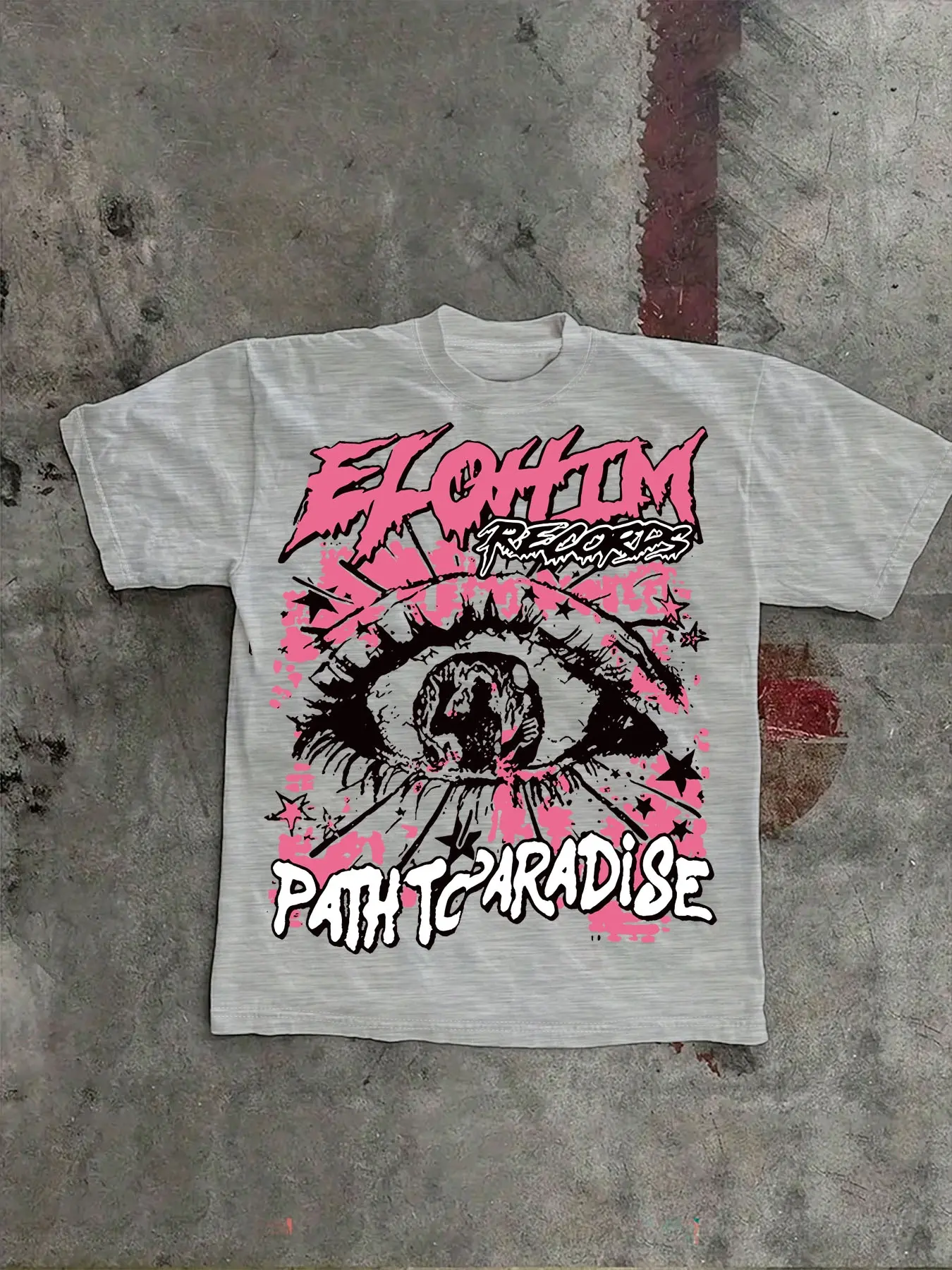 【Unique Graphics】: Featuring eye-catching eye and letter prints, this shirt brings a fresh take to traditional tees.