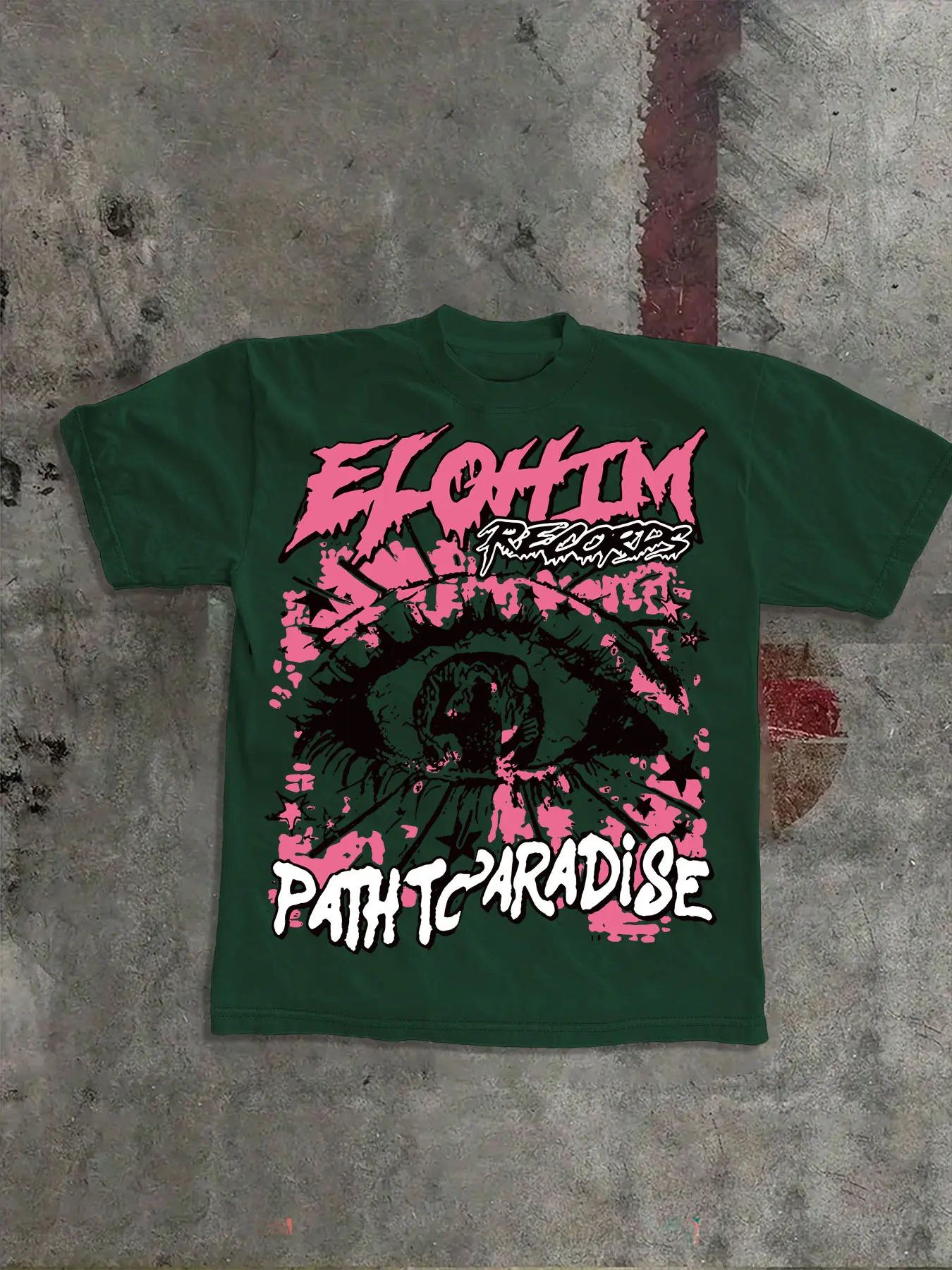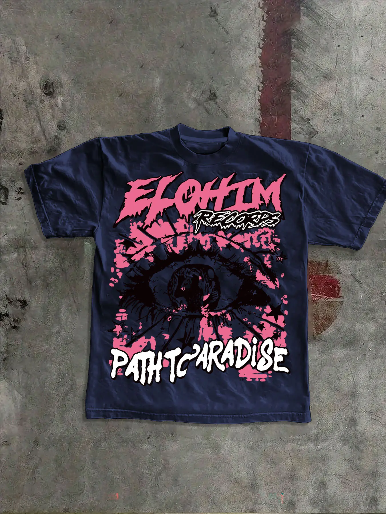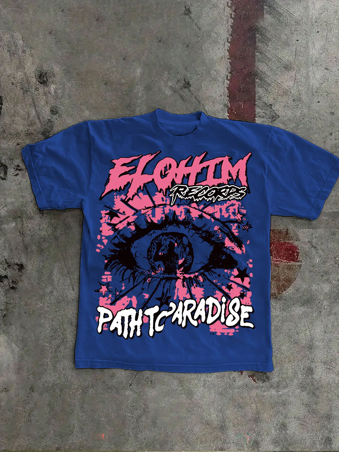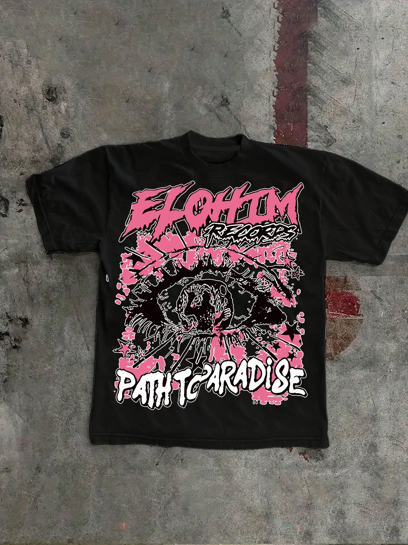 【Unique Graphics】: Featuring eye-catching eye and letter prints, this shirt brings a fresh take to traditional tees.