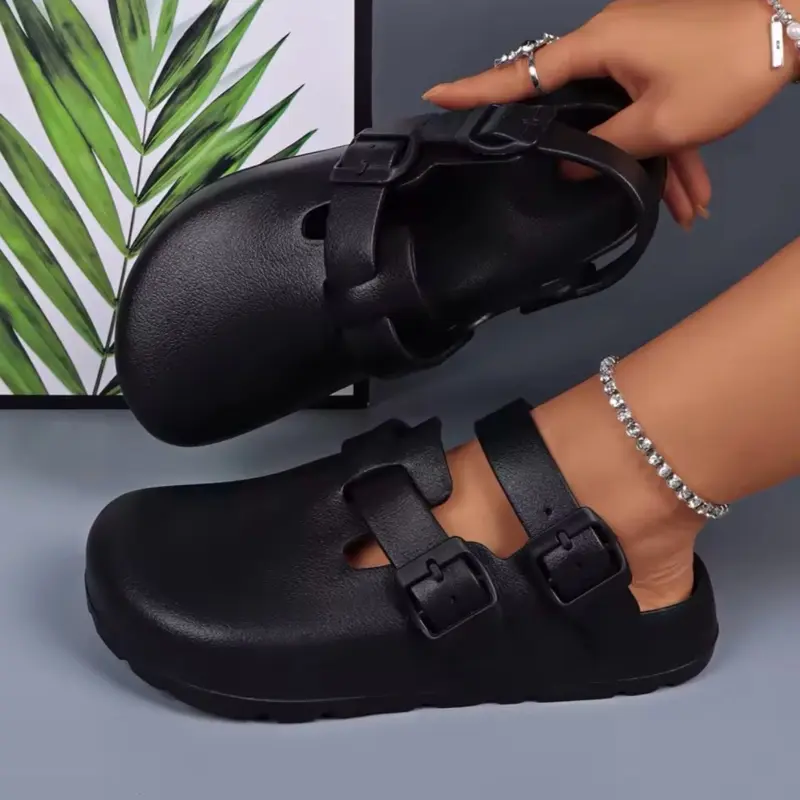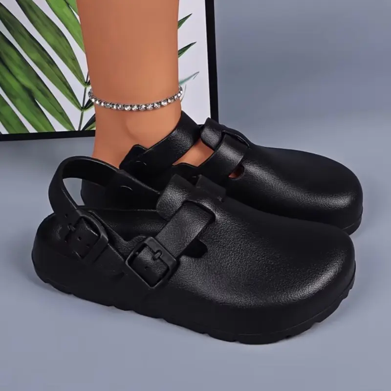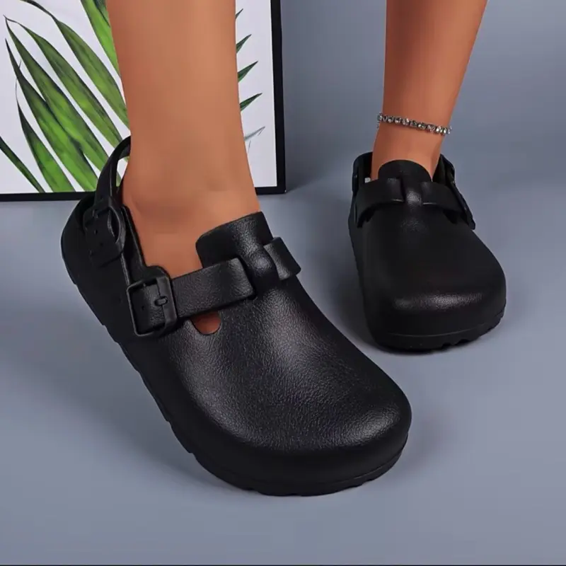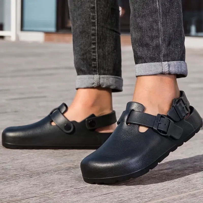 ·Adjustable Flat Buckle Strap: Allows for a customized fit, ensuring that the clogs stay securely on the feet.