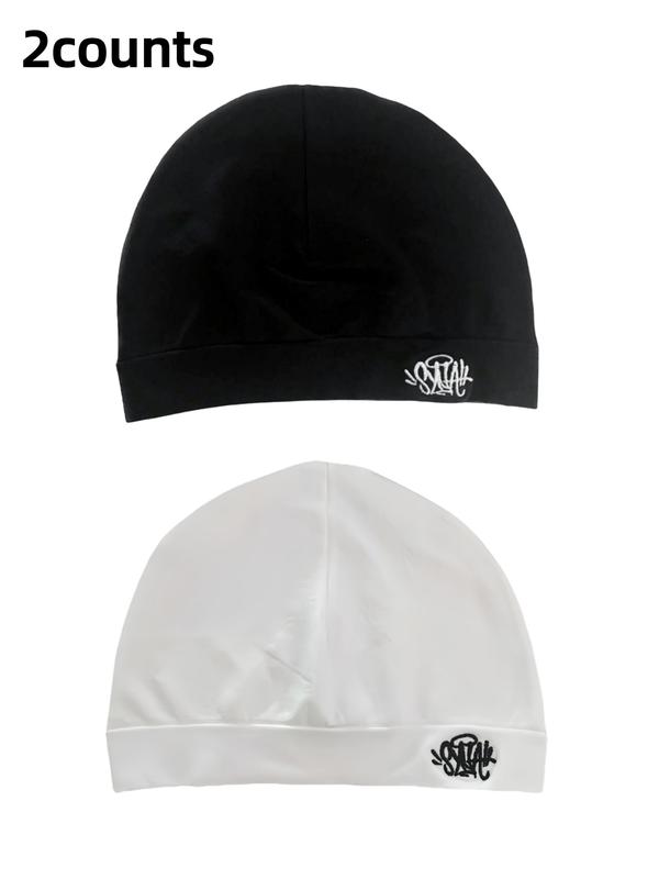 2PC New Letter Print Beanie Hats, Unisex Sports Outdoor Running Caps, Breathable Elastic Material, Fashion Casual Style, All Seasons, Yoga Ventilated Hat
