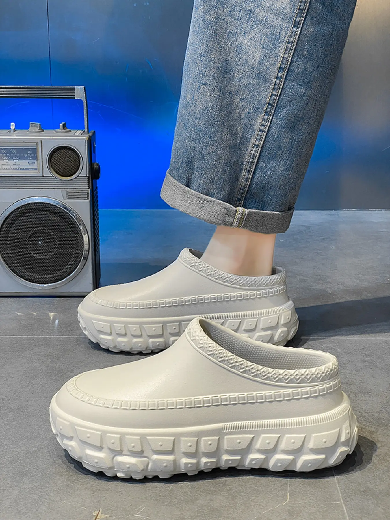 Unisex Thick Sole Casual Shoes, Anti-Slip Waterproof Eva Material, Simple Trendy Style, Comfortable Textile Lining, Ideal for Daily Wear, Casual Slip On