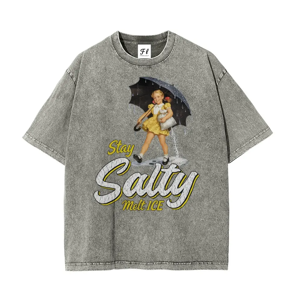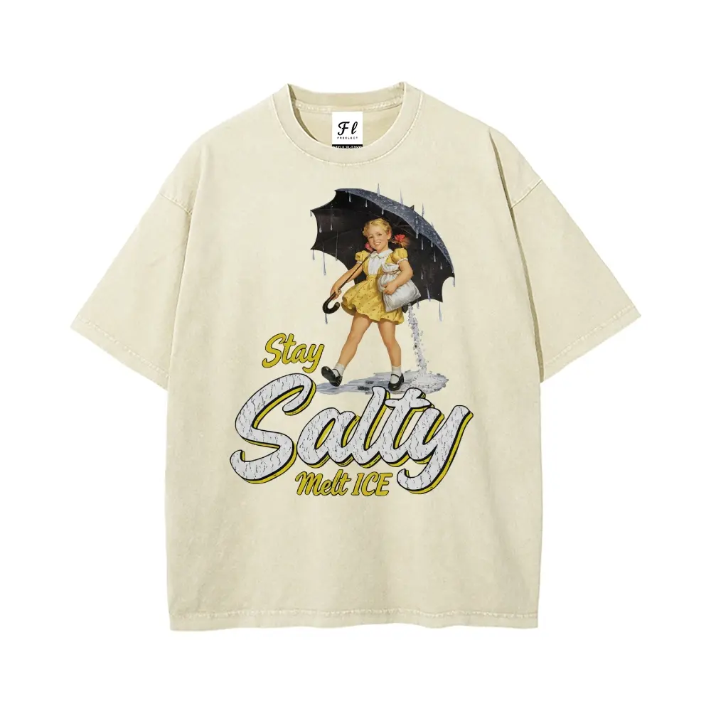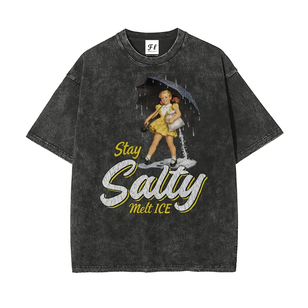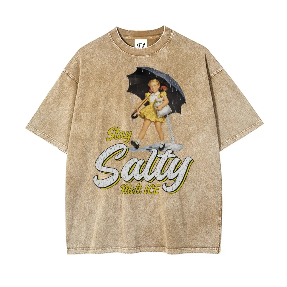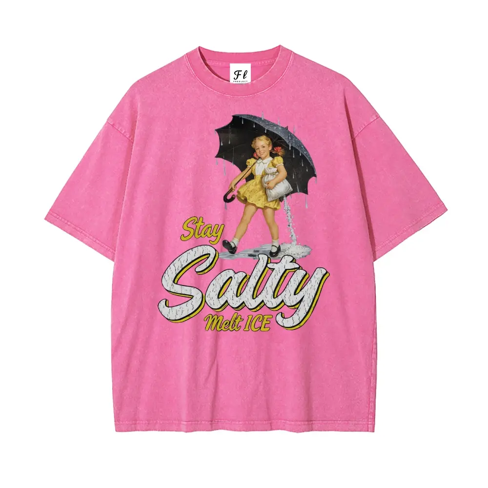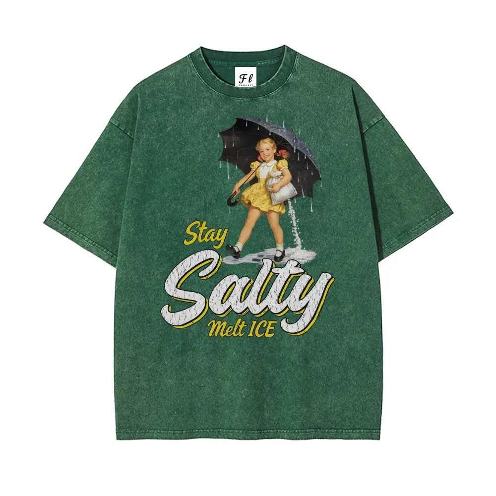 Subtle Anti Ice Stay Salty Protest Oversize Unisex Washed T-Shirt for Women and Men's Unisex Fit Batik Cotton Oversize Streetwear Menswear Super Soft Pre-Shrunk