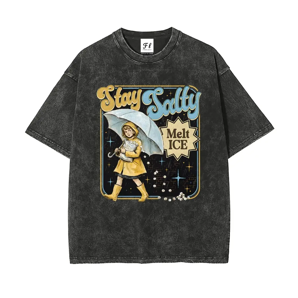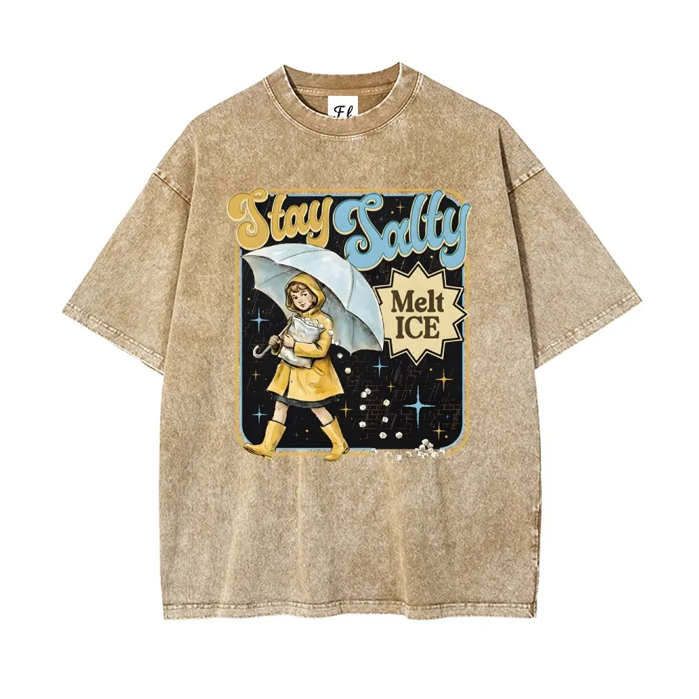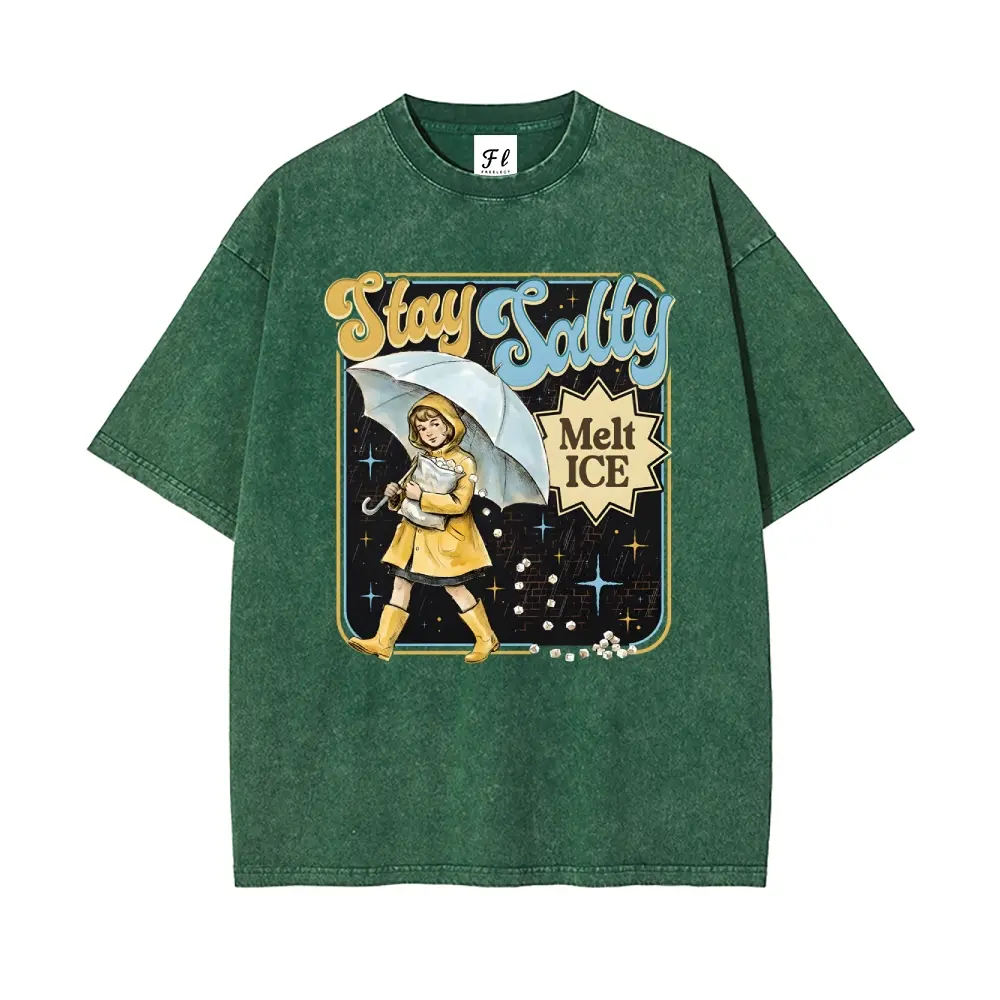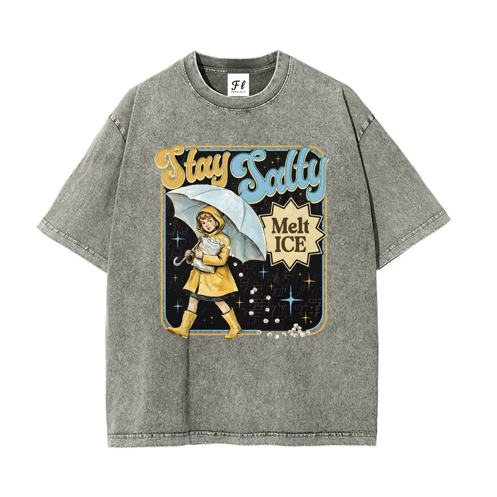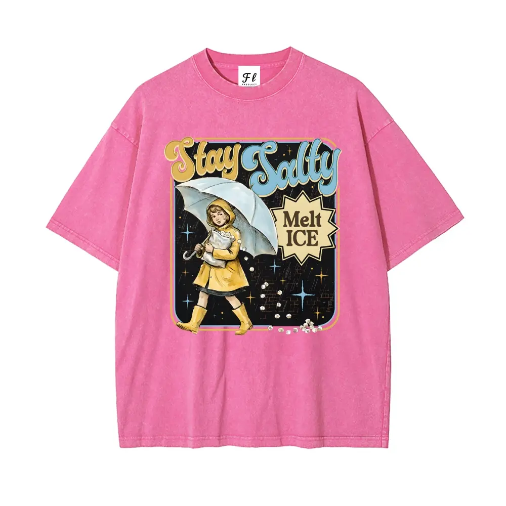5. Subtle Anti Ice Stay Salty Protest Interesting Careers Design Fun Profession S~5XL Oversize Unisex Washed T-Shirt for Women and Men's Unisex Fit Batik Cotton Oversize Streetwear Menswear Super Soft Pre-Shrunk