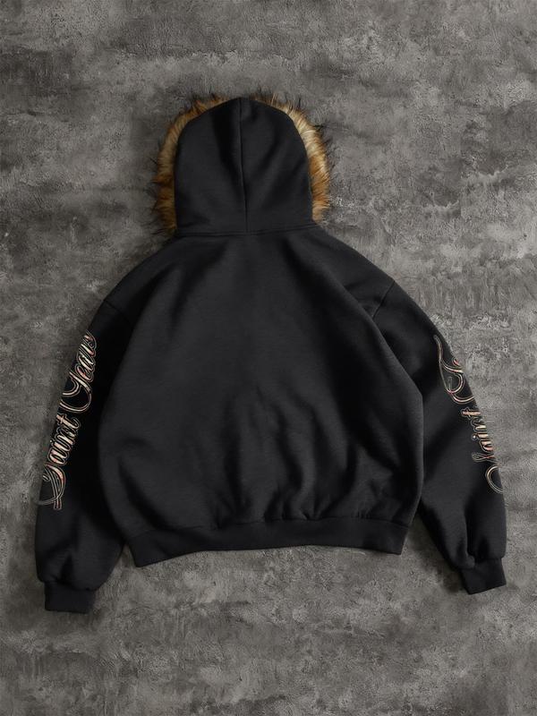 Unisex Y2K SaintTears with a print of Jesus wearing a crown of thorns Hooded Jacket, Fleece Lined, Zipper Design, Street Fashion, Warm and Stylish, Outdoor and Daily,Couple outfits, warm clothing, gothic style, Y2K style Wear